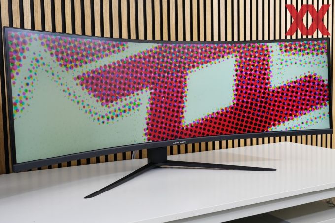 Grundlegend bietet das Panel mit einer Auflösung von 5.120 x 1.440 Bildpunkten eine angenehme Schärfe, ohne dabei an aktuelle UHD-Geräte im 32-Zoll-Format heranzureichen. Nicht nur hinsichtlich der Größe auch mit Blick auf die Auflösung ist so, als hätte man zwei QHD-27-Zöller vor sich – nur ohne den störenden Mittelsteg. Wer hochauflösende Bilder oder Videos bearbeiten möchte, greift besser zu einem UHD- oder 5K-Gerät,