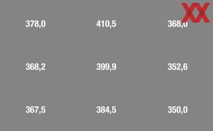 Die Homogenität liegt bei 85,26 %, der tatsächliche Helligkeitsunterschied zwischen dem hellsten und dunkelsten Sektor beträgt 60,5 cd/m². Für ein so breites Curved-Gerät sind das keine überraschenden Werte.