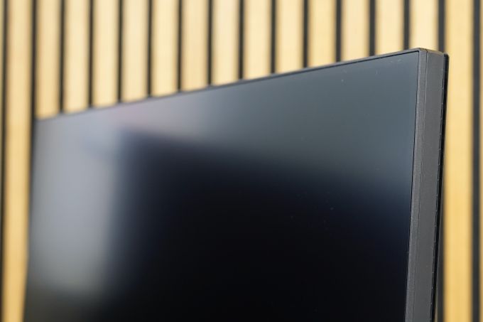 Das Coating ist stumpfmatt, spiegelt aber etwas stärker als wir es von einem AG-Coating kennen. Eine Lichtquelle im Raum hellt den Schwarzwert sichtbar auf, sodass der volle Kontrastumfang nur in dunklen Umgebungen ausgespielt werden kann.