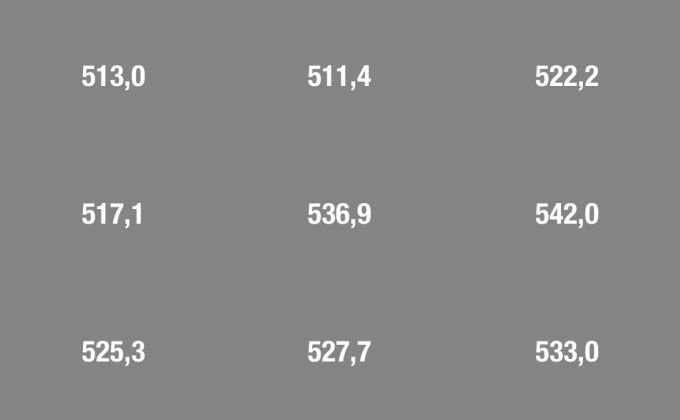 Gleichzeitig sehen wir für ein LCD-Gerät ein exzellentes Ergebnis mit Blick auf die Homogenität, denn zwischen dem hellsten und dem dunkelsten Sektor liegen gerade einmal 30,6 cd/m², was zu einer Homogenität von 94,35 % führt. Das kann sich sehen lassen.
