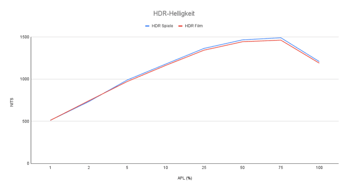 Zwischen den beiden Presets gibt es keine Unterschiede. Die maximale Helligkeit ist bei 50 % erreicht. Sie ist auf jeden Fall ausreichend, um eine spektakuläre HDR-Wiedergabe zu erzeugen.