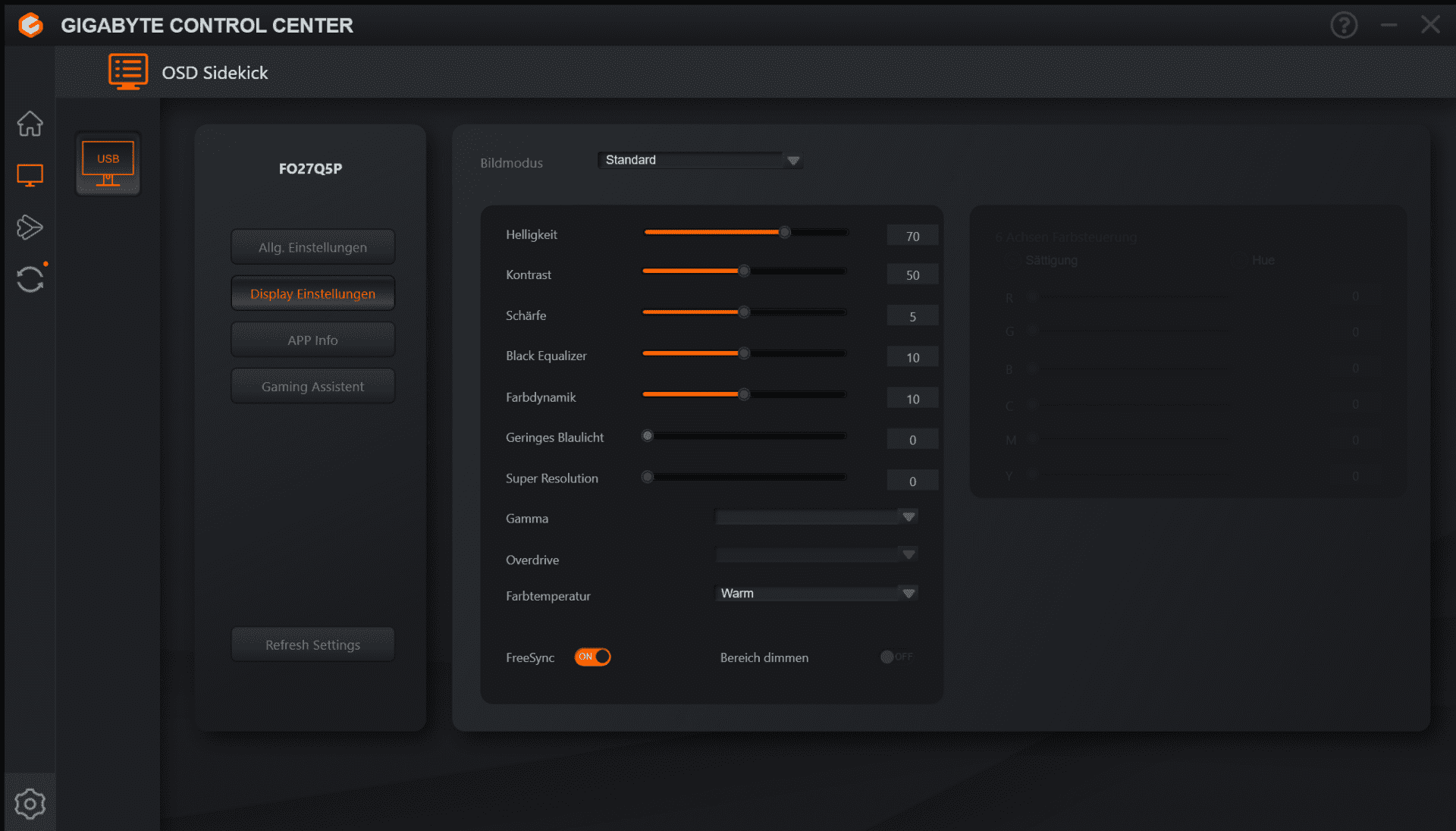 Das Software-Paket kann mit einer gefälligen Optik aufwarten und erlaubt es, weitere Gigabyte-Produkte einzubinden. Die wichtigsten Funktionen können so recht komfortabel per Maus gesteuert werden. Allerdings stehen nicht alle Features wie die OLED-Schutzfunktionen bereit. Hier haben andere Hersteller umfassendere Lösungen am Start.
