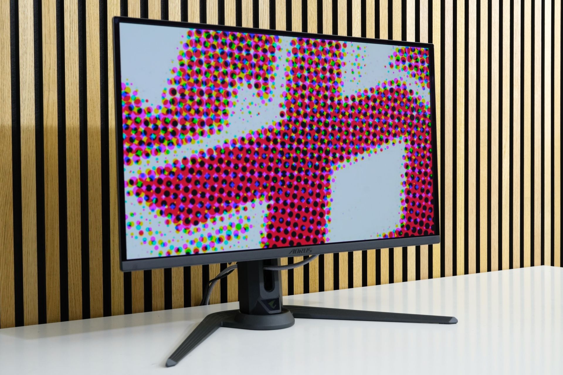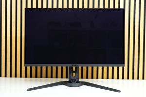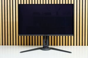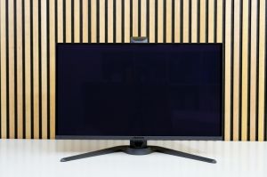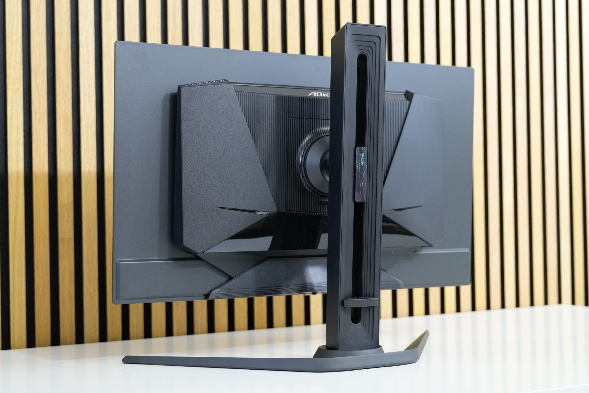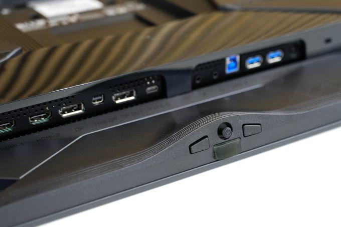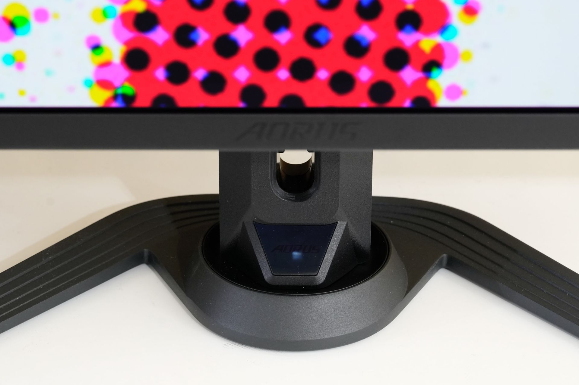 Der Trend zum Joystick ist unbestreitbar. Auch der AORUS FO27Q5P geht diesen Weg und setzt auf ein zentral auf der Unterseite platziertes Element, das so ideal zu erreichen ist. Flankiert wird es von zwei Tasten. Ein klein wenig Vorsicht sollte man also walten lassen, sonst wird der Monitor aus Versehen noch ausgeschaltet. Dennoch: Das Handling ist an dieser Stelle als sehr gut zu bewerten.