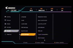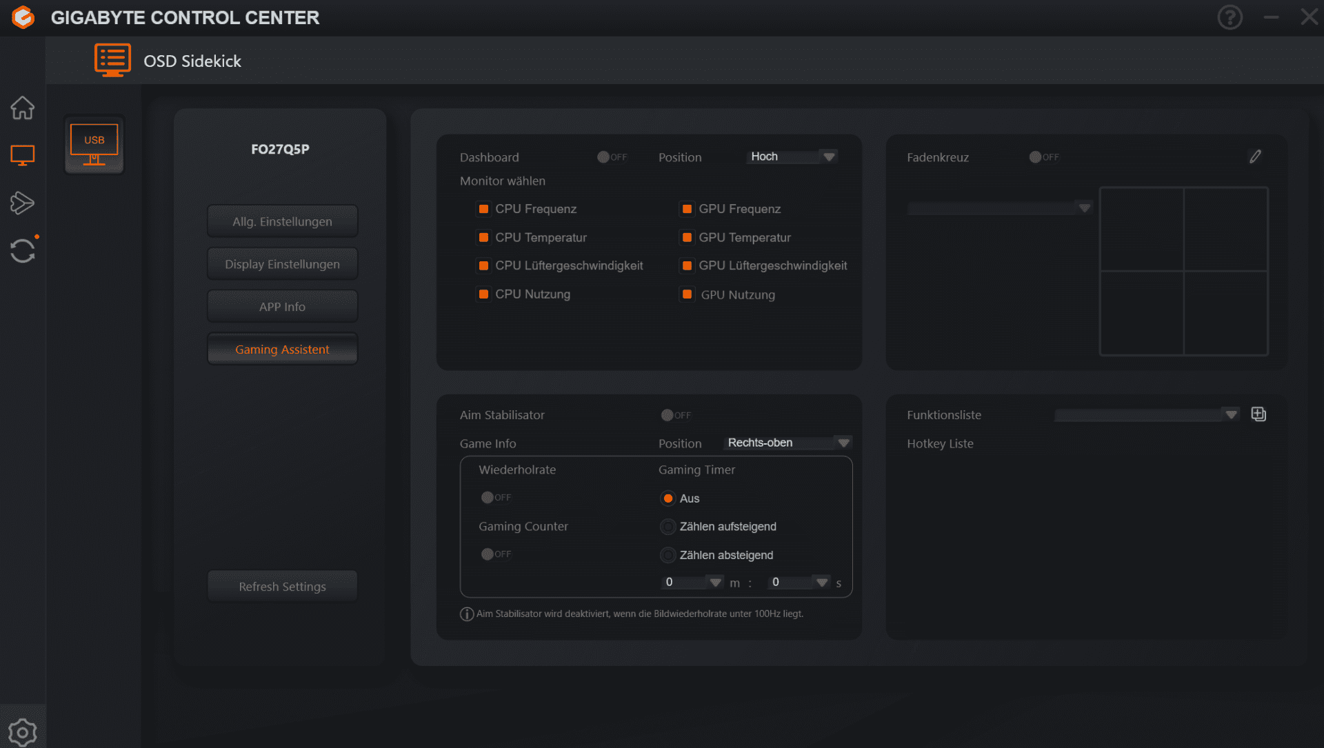 Zwei Sektionen, die andere Hersteller in das Hauptmenü integrieren, landen bei AORUS in der ersten Ebene: die Gaming- und die OLED-Schutzfunktionen. Das ist insofern konsequent, als dass die beiden Funktions-Sets im Alltag durch eine gewisse Relevanz haben.