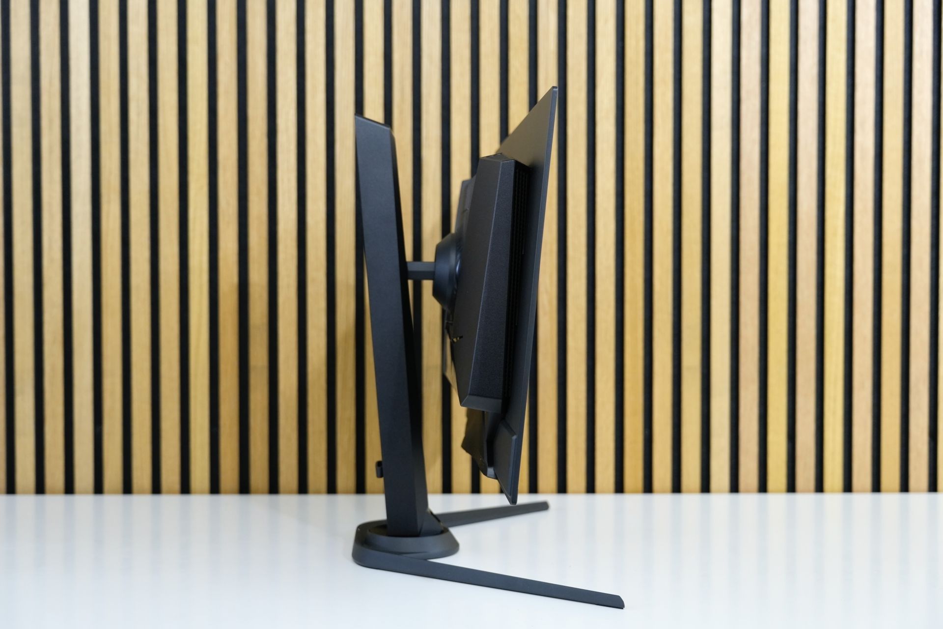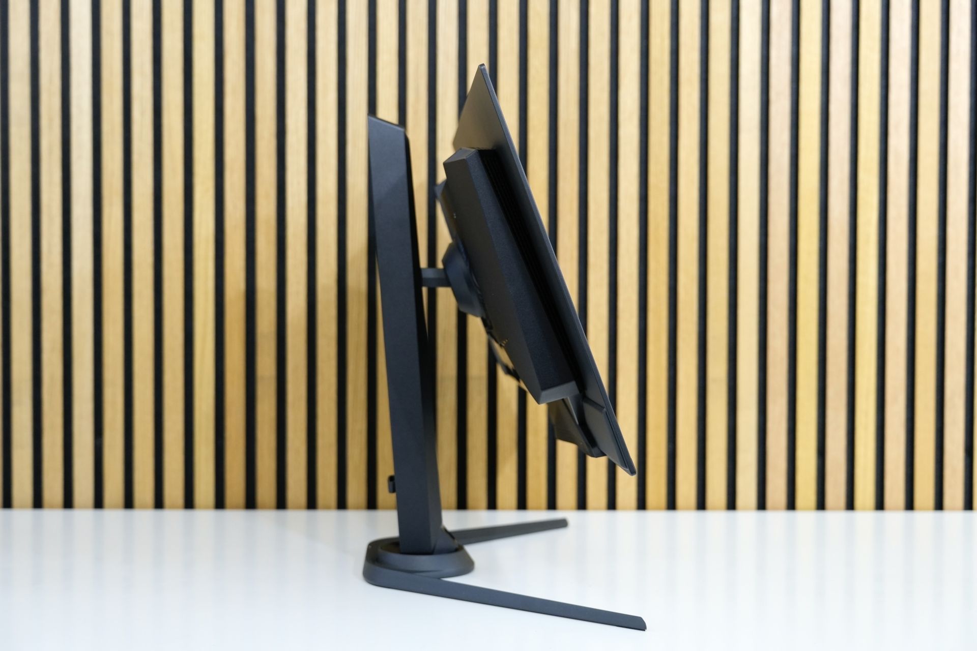 Alle mechanischen Einstellmöglichkeiten wurden sinnvoll umgesetzt. Das Panel kann in einem Bereich von 130 mm in der Höhe verstellt und im Bereich von –5 ° bis 20 ° in der Neigung angepasst werden. Zudem ist eine Drehung um je 20 ° nach links oder rechts möglich. Abgerundet wird die Vorstellung von der Pivot-Funktion. Im Uhrzeigersinn kann das Panel um 90 ° in den Hochformatbetrieb gedreht werden.