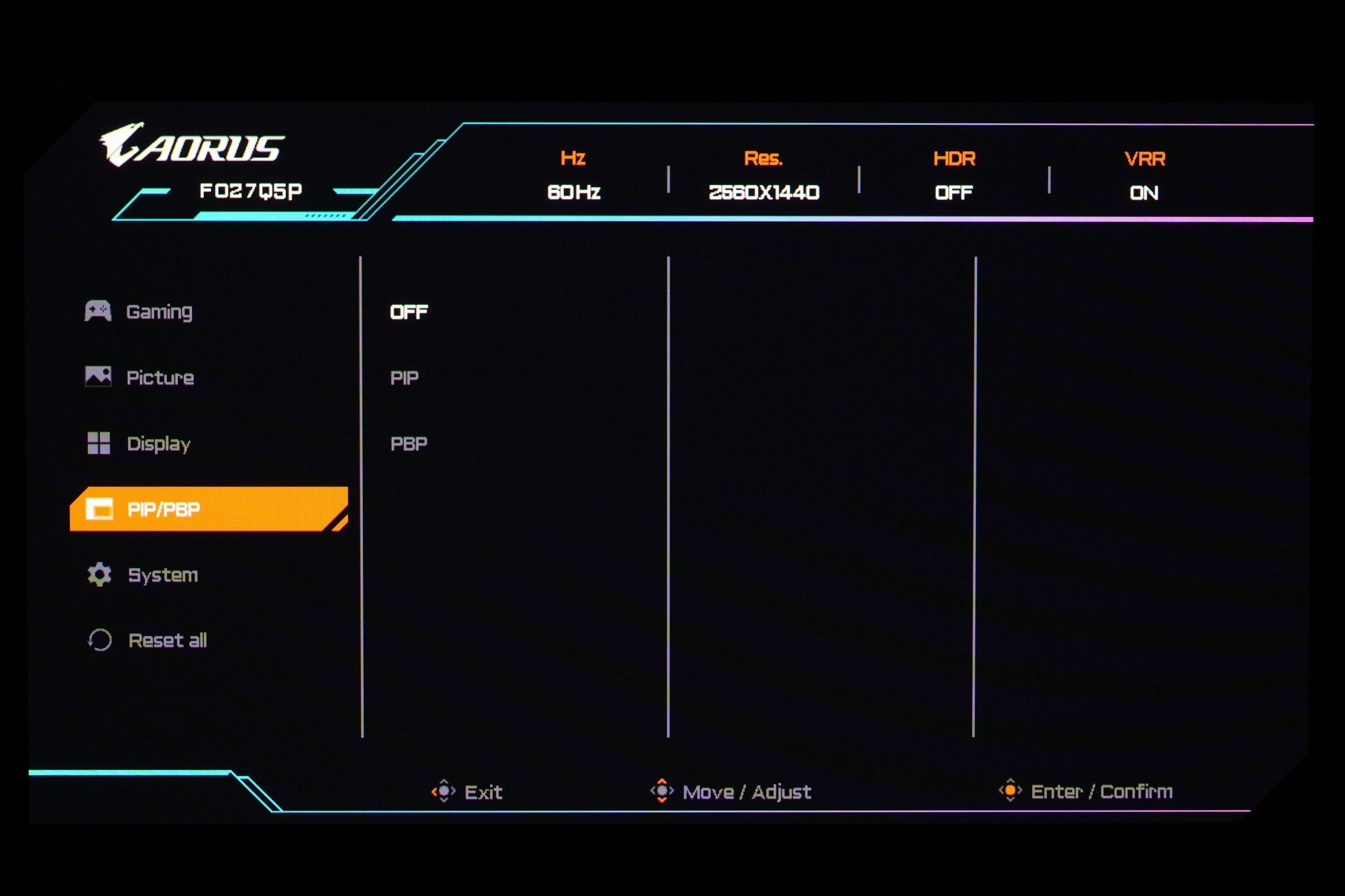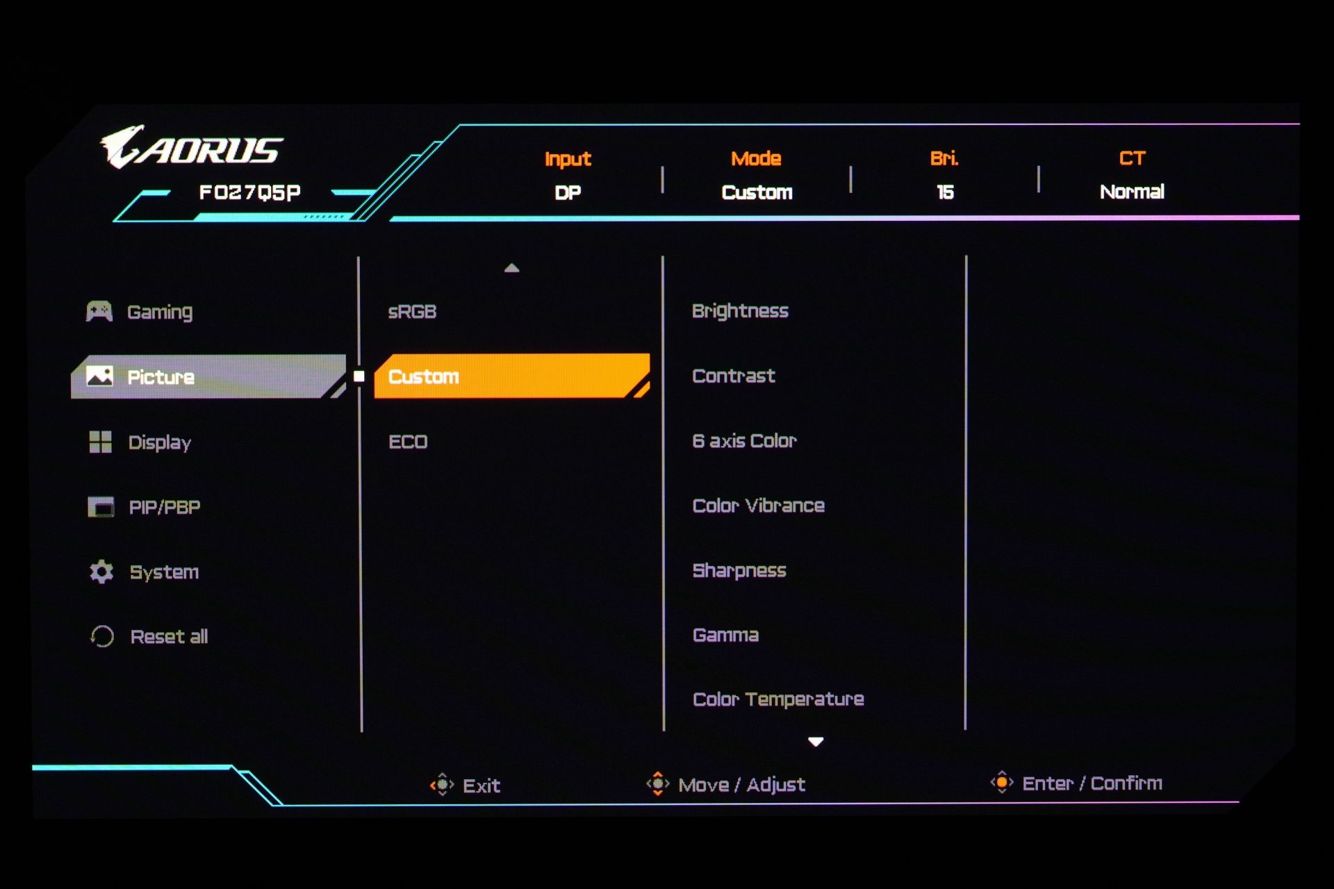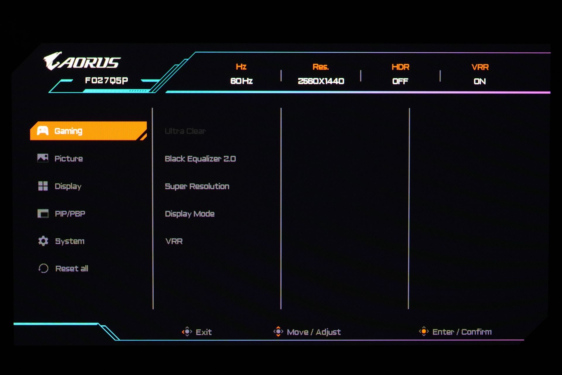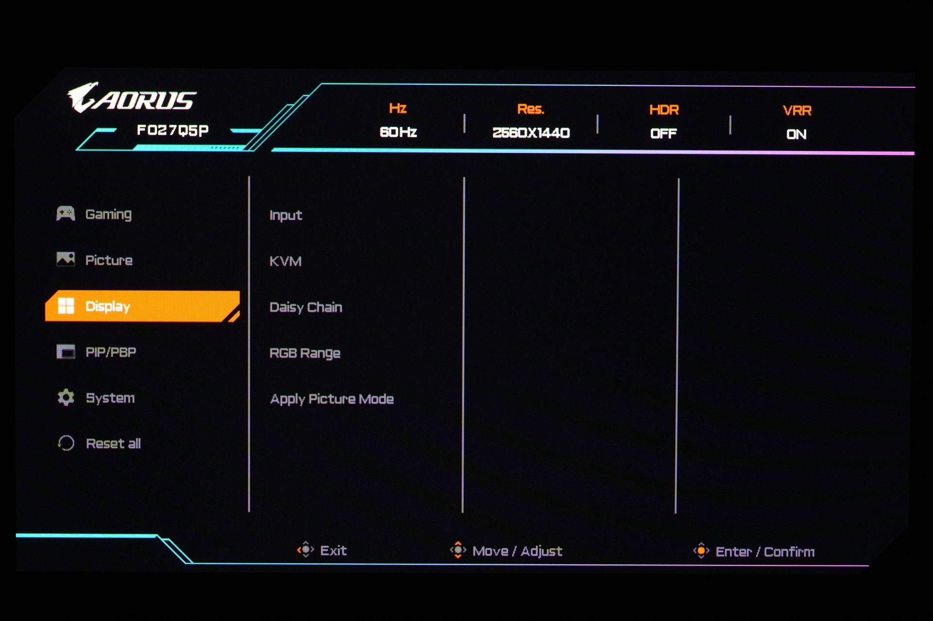 Das OSD ist grundlegend zweistufig aufgebaut, wobei AORUS einen leicht anderen Weg als viele Konkurrenten wählt. Natürlich ist auch hier der Zugriff auf das eigentliche Menü möglich, das gut strukturiert den Zugriff auf alle wichtigen Funktionen bietet. So finden sich selbst unerfahrene Anwender schnell zurecht.