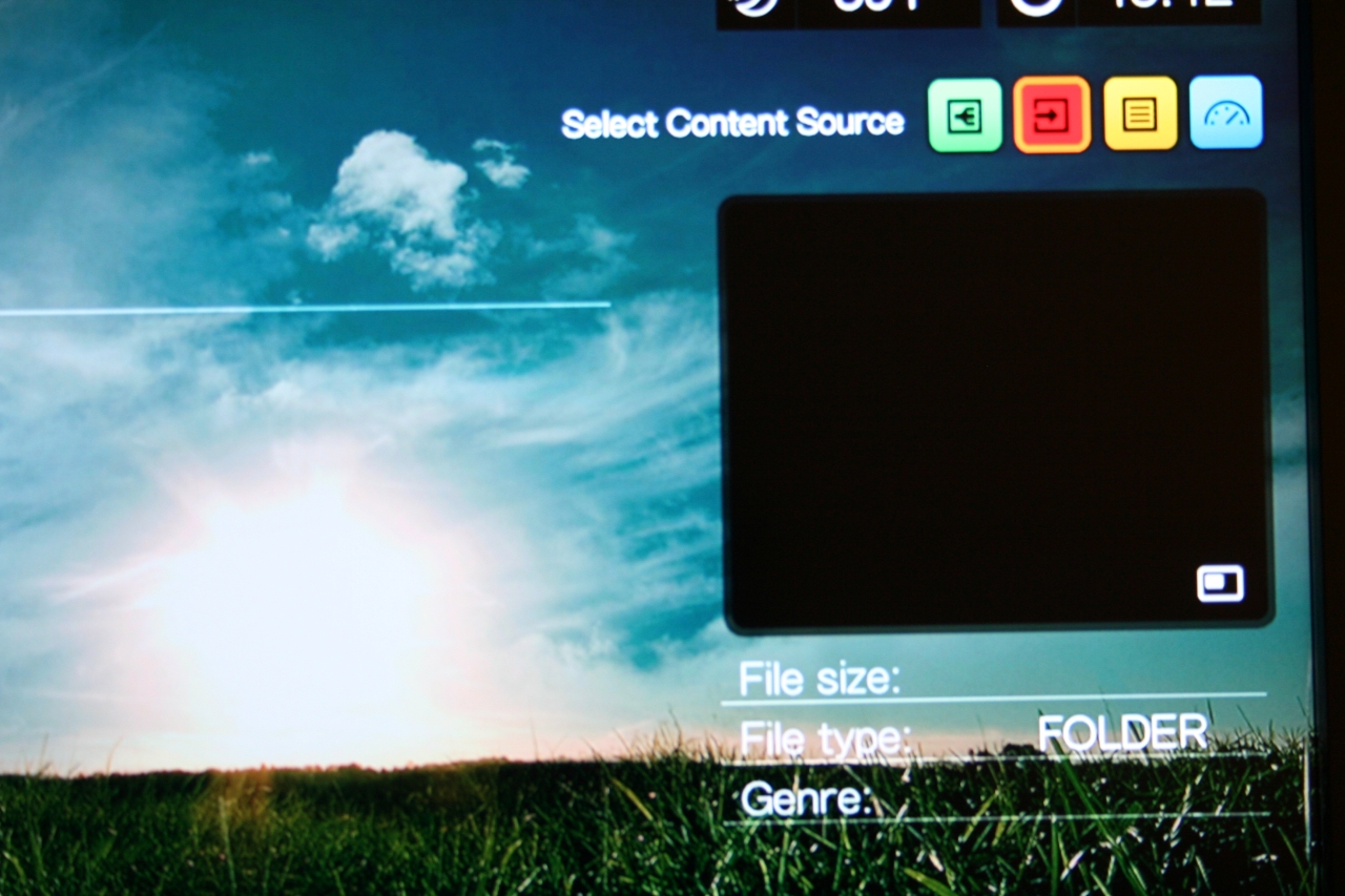 Unabhängig ob man Bilder, Musik oder Videos abspielen möchte, erscheint nach der Anwahl des Hauptmenüs für jeden Punkt an der oberen rechten Seite ein weiterer Navigationsbereich. Dort sind 4 Punkte fixiert, die auch über die Schnelltasten der Fernbedienung erreichbar sind. Hier können unter anderem die Quellen (lokal, extern, Netzwerk, etc.) gewechselt werden. Neueinsteiger werden mit der neuen Menüführung sicherlich keine Schwierigkeiten haben, alteingesessene Anwender vorheriger WD TV werden jedoch etwas Eingewöhnungszeit benötigen. Zur schnellen Überspielung von Inhalten gibt es neuerdings auch diverse Synch-Funktionen.