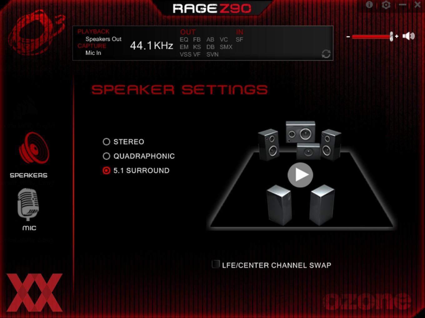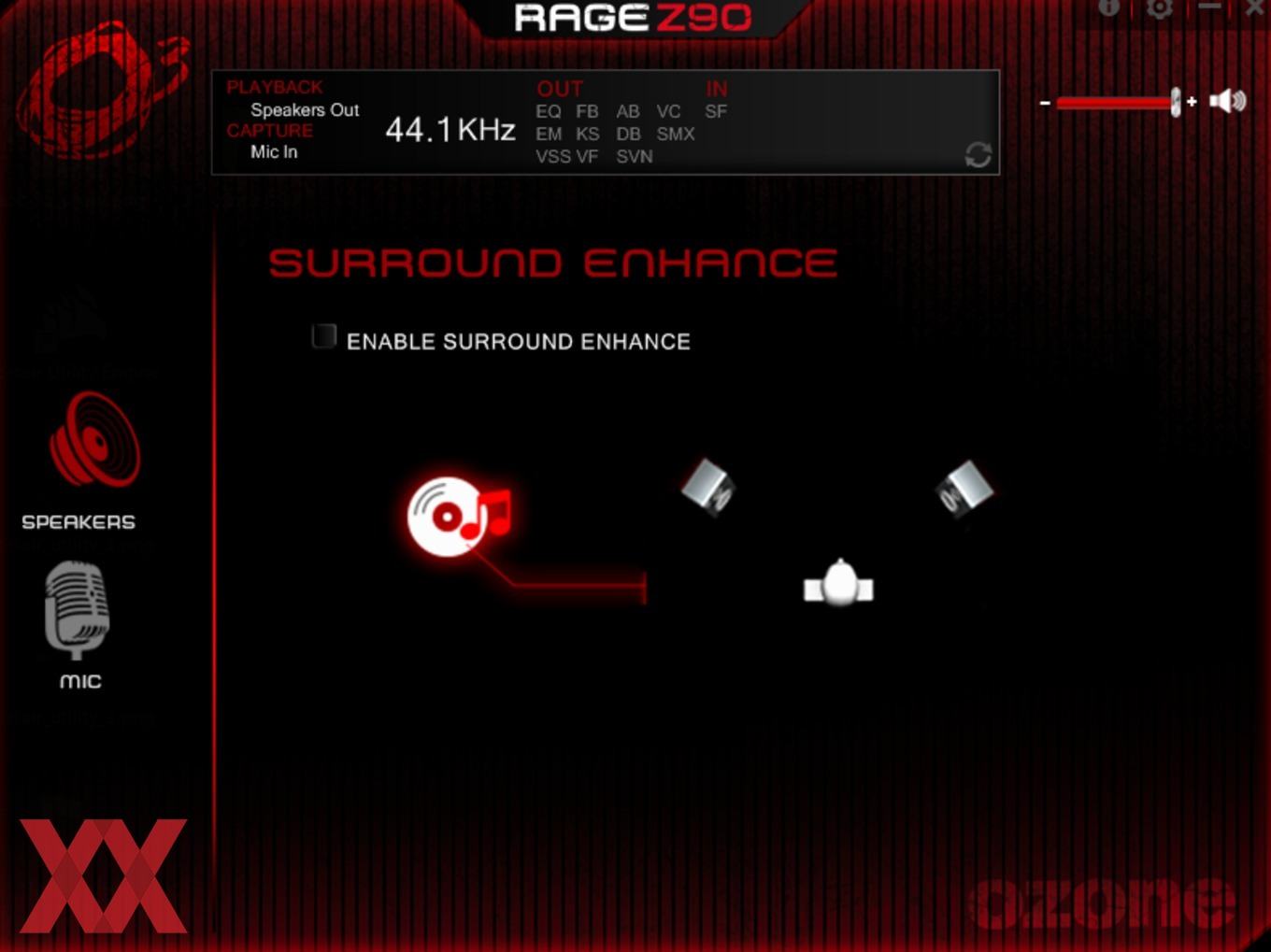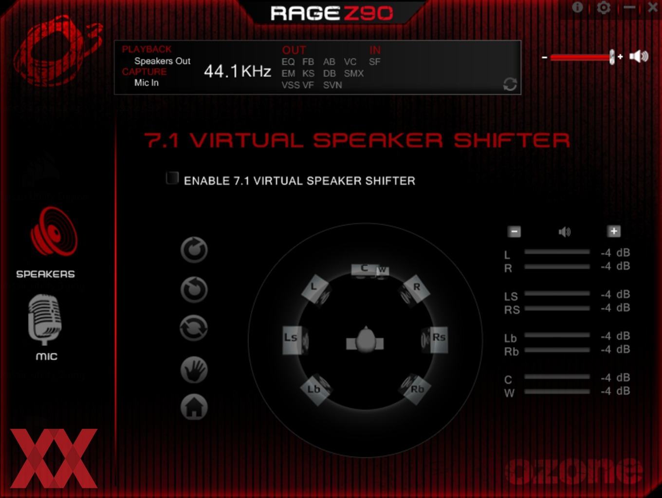 Wer nun denkt, Ozone hätte die Software beschnitten, da bereits die gut ausgestattete Kabelfernbedienung vorhanden ist, der irrt. Die vom Hersteller zum Download bereitgestellte Software bietet einen mehr als üppigen Funktionsumfang. Neben einem Equalizer mit verschiedenen Presets und der Möglichkeit zur manuellen Anpassung gibt es einen großen Funktionsumfang für das Bassmanagement und zahlreiche Surround-Einstellmöglichkeiten. So besteht beispielsweise nicht nur die Möglichkeit die einzelnen Pegel der virtuellen Kanäle anzupassen, es können auch die Positionen „im Raum“ angepasst werden. Allgemein gültige Aussagen können hier nur schwer getroffen werden, es lohnt sich aber in jedem Fall, sich etwas mit den Möglichkeiten auseinanderzusetzen.