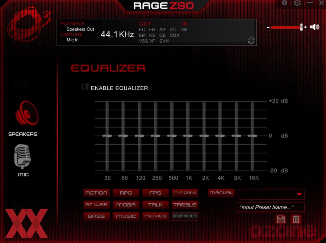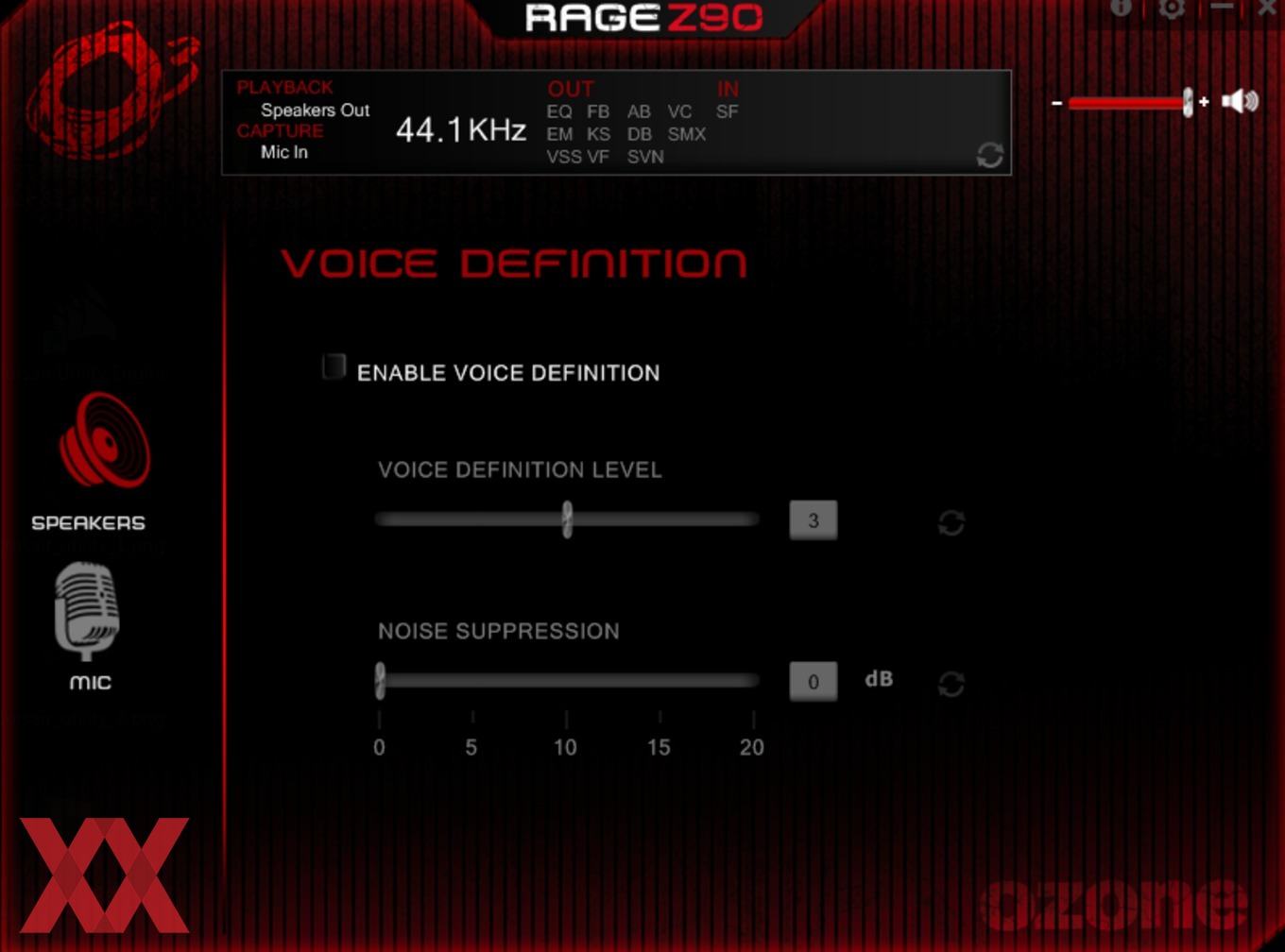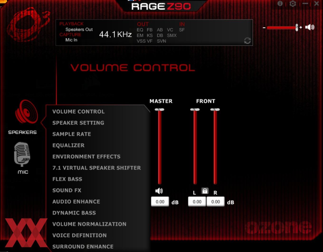 Wer nun denkt, Ozone hätte die Software beschnitten, da bereits die gut ausgestattete Kabelfernbedienung vorhanden ist, der irrt. Die vom Hersteller zum Download bereitgestellte Software bietet einen mehr als üppigen Funktionsumfang. Neben einem Equalizer mit verschiedenen Presets und der Möglichkeit zur manuellen Anpassung gibt es einen großen Funktionsumfang für das Bassmanagement und zahlreiche Surround-Einstellmöglichkeiten. So besteht beispielsweise nicht nur die Möglichkeit die einzelnen Pegel der virtuellen Kanäle anzupassen, es können auch die Positionen „im Raum“ angepasst werden. Allgemein gültige Aussagen können hier nur schwer getroffen werden, es lohnt sich aber in jedem Fall, sich etwas mit den Möglichkeiten auseinanderzusetzen.