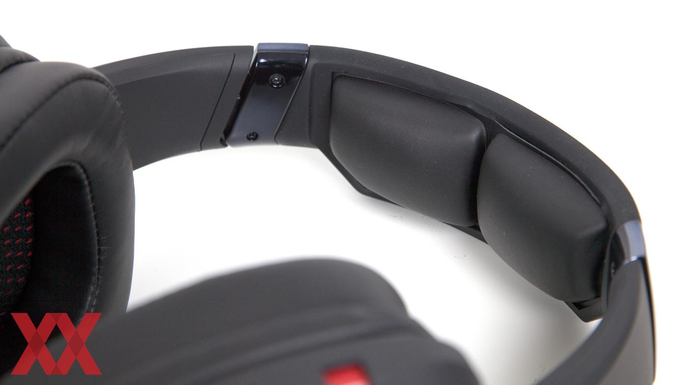 Einen Teil zum hohen Komfort trägt auch die moderate Spannung des Bügels bei, denn Ozone findet einen guten Kompromiss aus einem sicheren Sitz des Headsets und einem moderaten Druck auf den Kopf. Der eigentliche Tragebügel wurde von Ozone ebenfalls mit zwei voluminösen Polster versehen, die den positiven Eindruck im Kapitel Tragekomfort unterstreichen.