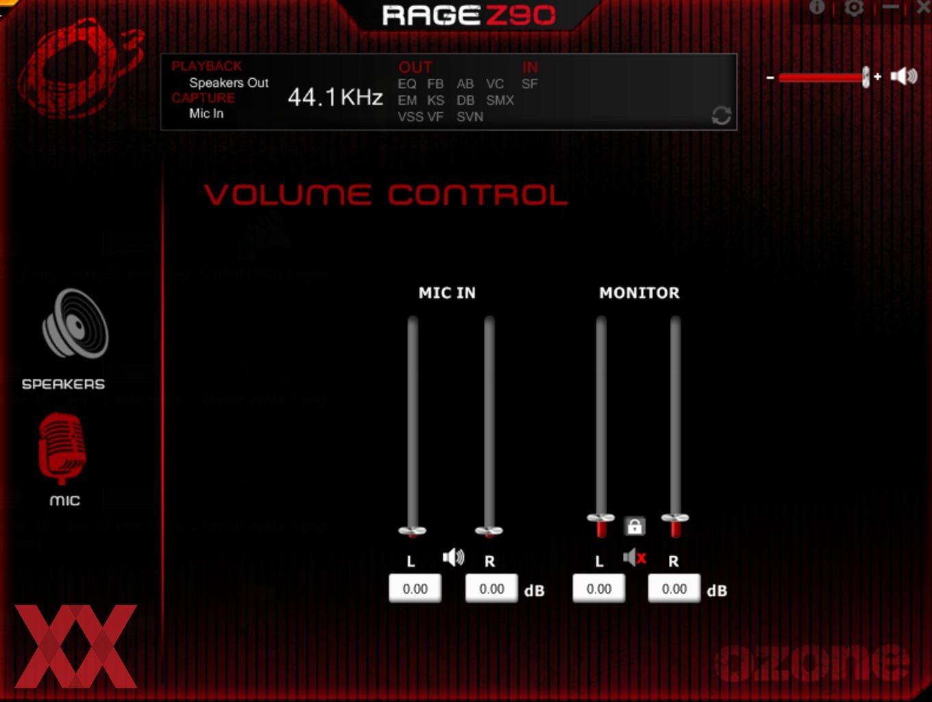 Wirklich interessant und ungewöhnlich ist aber erst, was Ozone hinter der Klappe aus getöntem Plexiglas versteckt. Dort befinden sich vier Schieberegler, mit denen die Lautstärke der einzelnen Kanäle im Surround-Betrieb angepasst werden kann. Das ist eine nette Spielerei, weshalb Ozone aber nicht einfach den gewohnten Weg über die Software geht, ist nicht ganz ersichtlich, schließlich werden die einzelnen Kanäle für den Raumklang üblicherweise nur einmal anfänglich eingepegelt. Der einzige Vorteil besteht darin, dass das Headset auch ohne Treiber grundlegend genutzt werden könnte, was wir aber nicht empfehlen würden.