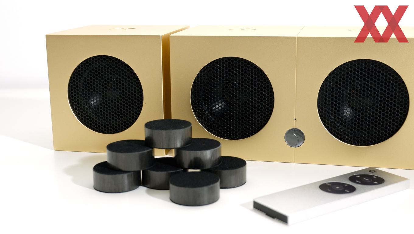 Über jeden Zweifel erhaben sind die Verarbeitungsqualität und Materialgüte der Aluminium-Würfel. Über Design lässt sich bekanntlich streiten, uns gefällt die bewusst reduzierte Optik aber. Recht überschaubar fällt das Anschlussportfolio aus, die wichtigsten Schnittstellen werden aber geboten. Die Bedienung wie Fernbedienung oder App ist zweckdienlich und geht einfach von der Hand.