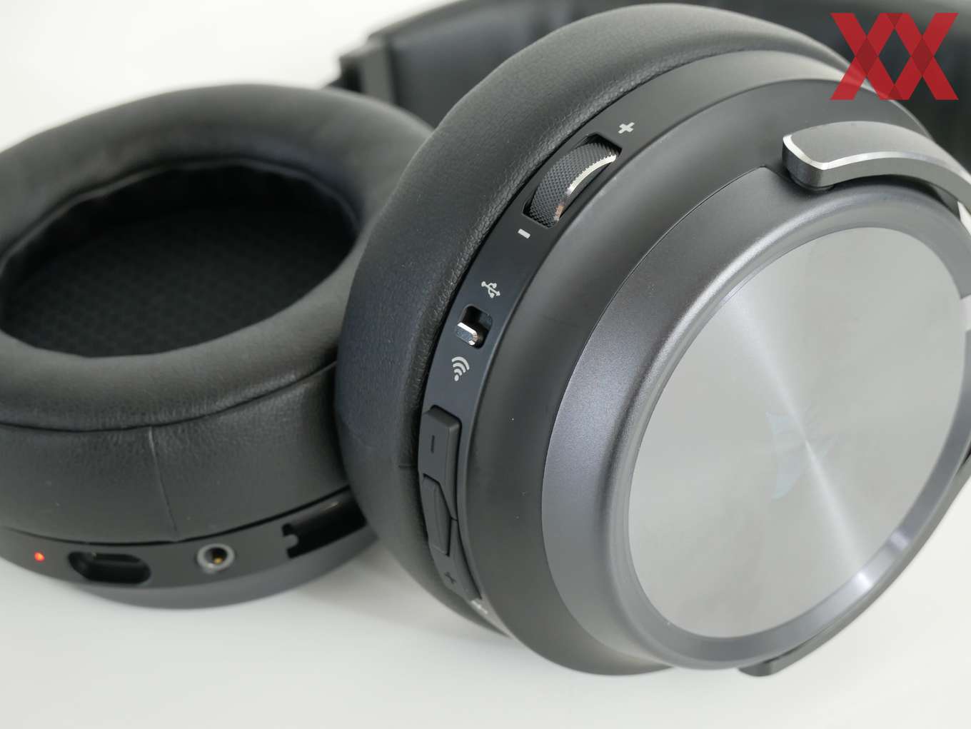 Für die Bluetooth-Verbindung gibt es ein neues Bedienelement, das aus drei Tasten besteht und sich gut nutzen lässt, hinsichtlich der Haptik allerdings nicht mit dem restlichen Headset mithalten kann. Über die drei Tasten ist es möglich, die verschiedenen Soundquellen zu steuern. Gegenüber der restlichen Bedienung wäre an dieser Stelle noch eine etwas bessere Beschriftung wünschenswert gewesen.