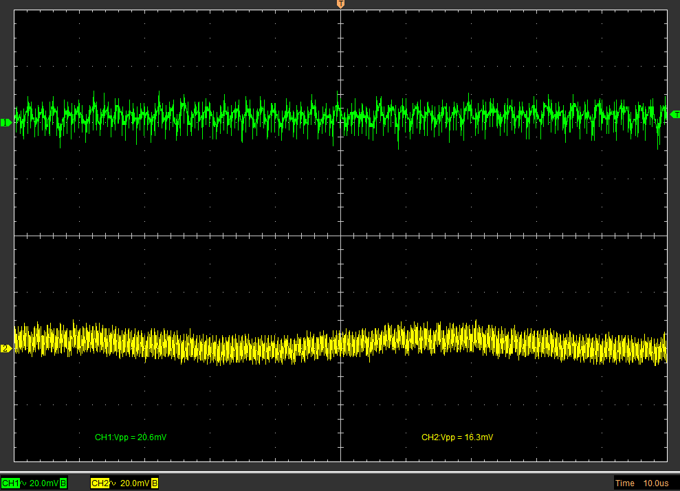 Bei den Nebenspannungen sieht die Lage ebenfalls sehr gut aus. Sowohl die 3,3V- als auch die 5V-Versorgung zeigen sich als sehr stabil und weisen mit maximalen Werten im Bereich von unter 15 mV(pp) nur geringe Schwankungen auf. Das Limit laut ATX Design Guide liegt schließlich bei 50 mV(pp).