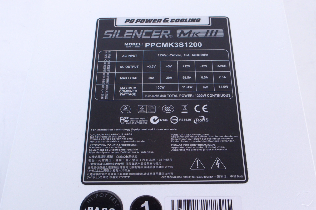 Das PPCMK3S1200 ist als klassisches Single-Rail-Netzteil konzipiert. Bei 1200 Watt Nominalleistung knackt die 12V-Schiene daher auch fast die Marke von 100 Ampere. Mit 1194 Watt, respektive 99,5 Ampere steht auf der 12V-Seite sehr viel Leistung bereit. Nur wenige Netzteile auf dem Markt sind noch leistungsfähiger. Die Nebenspannungen sind mit je 20 Ampere und 100 Watt zusammen belastbar, was wenig erscheint, aber bei modernen Systemen mehr als ausreichend ist. Gängige Sicherungen sind mit an Bord, aber bei einer fast 100 Ampere starken 12V-Schiene sollte man trotzdem Kurzschlüsse versuchen zu vermeiden.