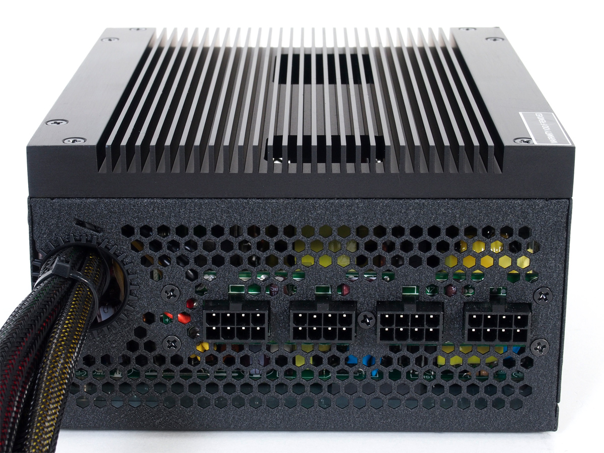 Die thermisch stärker belasteten Bauteile wie die MOSFETs auf Primär- und Sekundärseite sind im Prinzip ganz normal auf entsprechende Kühlkörper montiert. Im Unterschied zu aktiv gekühlten Netzteilen sind diese Kühlkörper über Wärmeleitpads mit dem großen Außenkühlkörper verbunden, der gleichzeitig auch die Funktion des Gehäusedeckels übernimmt. Allen restlichen Bauteilen bleibt zur Kühlung nur die Luftbewegung, die durch die offenen Seitenflächen des Gehäuse aufgrund natürlicher Konvektion entsteht. Bei einem modernen 80PLUS-Platinum-Netzteil mit vergleichsweise niedriger Leistung sollte das nicht zu schwierig sein.