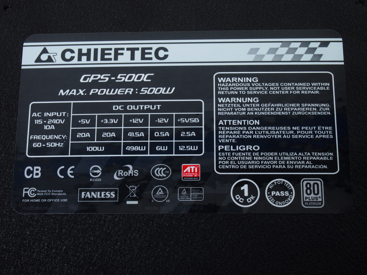Das Chieftec GPS-500C ist eine von Super Flower für Chieftec produzierte Version des Golden Silent Fanless 500W. Auch wenn bei einer OEM-Version hier und da minimale Änderungen vorgenommen werden, so sollte die Performance vergleichbar sein. Ohne Blick auf das Typenschild lassen sich GPS-500C und Golden Silent Fanless nur durch die Buchsen des modularen Kabelmanagements unterscheiden.