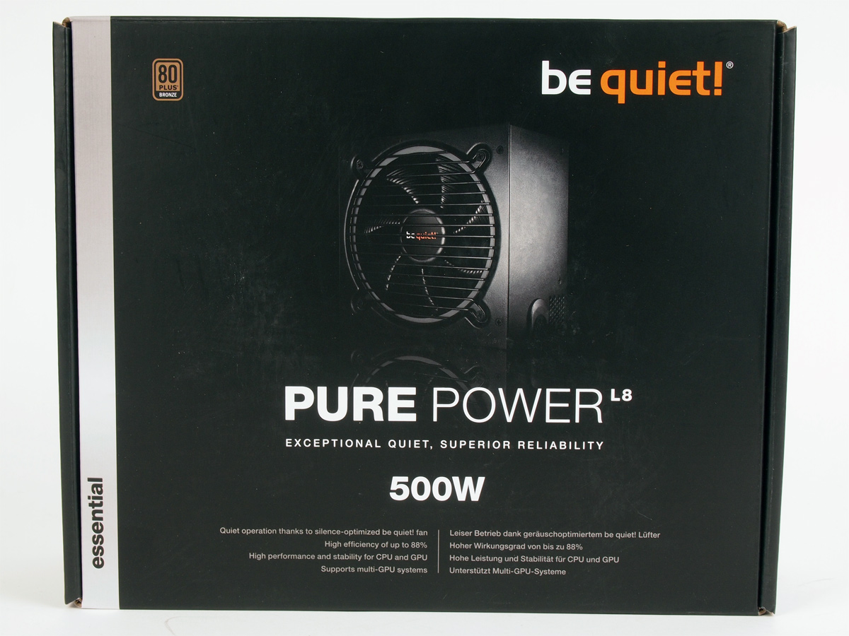 Mit den Pure Power deckt be quiet! schon seit längerem den Bereich der Einsteigernetzteile ab, und das, wie es scheint, auch recht erfolgreich. Der bekannte Markenname dürfte dabei die größte Rolle spielen, aber auch die Tatsache, dass die Pure Power in Design und Features an die höher positionierten Modellreihen angelehnt sind. Die Pure Power L8 bietet be quiet! in sechs Leistungsstufen von 300 bis 700 Watt an, wobei noch vier weitere Modelle von 430 bis 730 Watt mit modularem Kabelmanagement verfügbar sind.