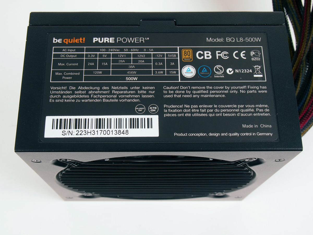 Vom Design her orientiert sich be quiet! beim Pure Power L8 an den anderen aktuellen Serien. Die Technik ist klassisch in einem anthrazit-farbenen Stahlblechgehäuse verpackt, welches mit 150 mm Länge die in dieser Leistungsklasse typische Größe aufweist. Der Lüfter mit Silent-Wings-Technik ist mit einem grauen Ring umgeben, der aber anders als z.B. die orange-farbenen Ringe der Straight-Power-Modelle keine Entkopplungsfunktion für den Lüfter hat, sondern nur die Modellreihe kennzeichnet.