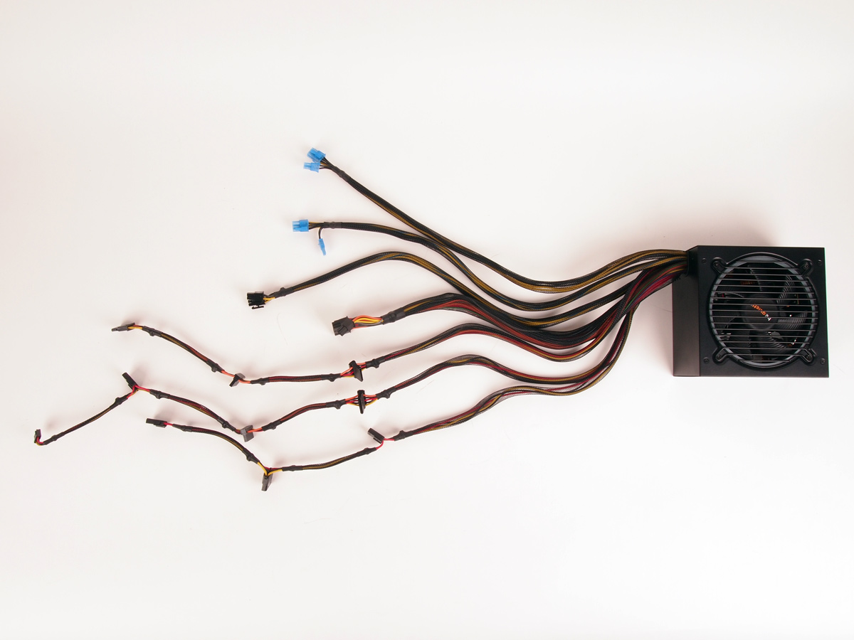Bezüglich der Ausstattung hat be quiet! nicht allzu sehr gespart. Zwei PCI-Express-Anschlüsse mit 8(6+2)-Pin-Steckern sind in dieser Leistungsklasse als gut zu bezeichnen. Mit nur fünf SATA- und vier Molex-Anschlüssen ist das Pure Power zumindest durchschnittlich aufgestellt. Insgesamt geht die Ausstattung aber angesichts des Preises in Ordnung.