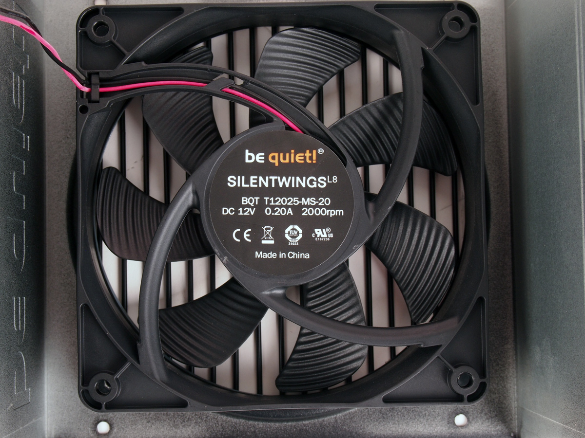 Ein wichtiges Merkmal eines be quiet! ist sein Lüfter, auch bei den Pure Power L8. Ein großer Teil des Markenimage basiert auf dem leisen Betrieb und daher kommt auch beim Pure Power L8 500W ein hauseigenes Modell mit der "Silent-Wings-Technologie" zum Einsatz. Der "Silentwings L8" orientiert sich mit seinem Rifle-Lager wohl eher an den günstigen Silent-Wings-Pure-Modellen, kann aber dennoch mit einer niedrigen Geräuschkulisse überzeugen.