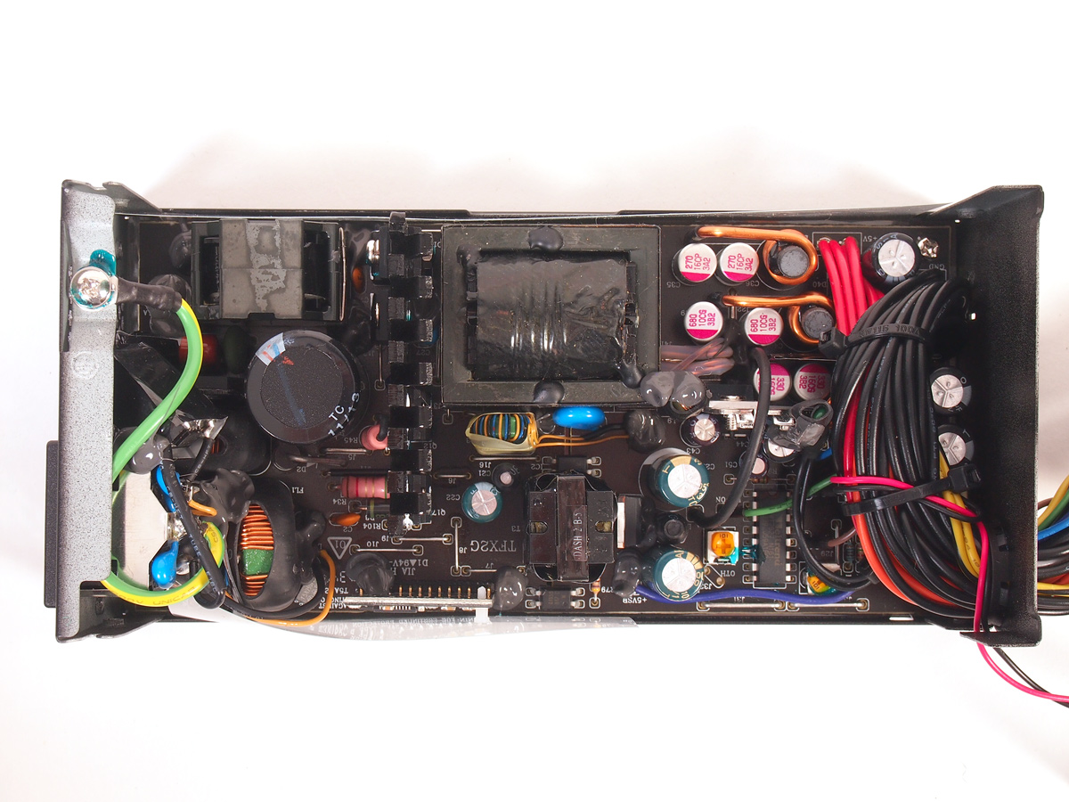 Von der Technik her, die aus dem Regal von Fortron Source stammt, bewegt sich das TFX Power 2 300W Gold ebenfalls auf technisch solidem Stand. Bei den Kondensatoren setzt be quiet! auf solide Taiwan-Ware von Teapo: Primärseitig kommt ein Modell mit 420V, 180 uF und 85 °C zum Einsatz, während sekundärseitig hauptsächlich Elektrolytkondensatoren von Teapo mit 105°C-Rating verbaut werden.