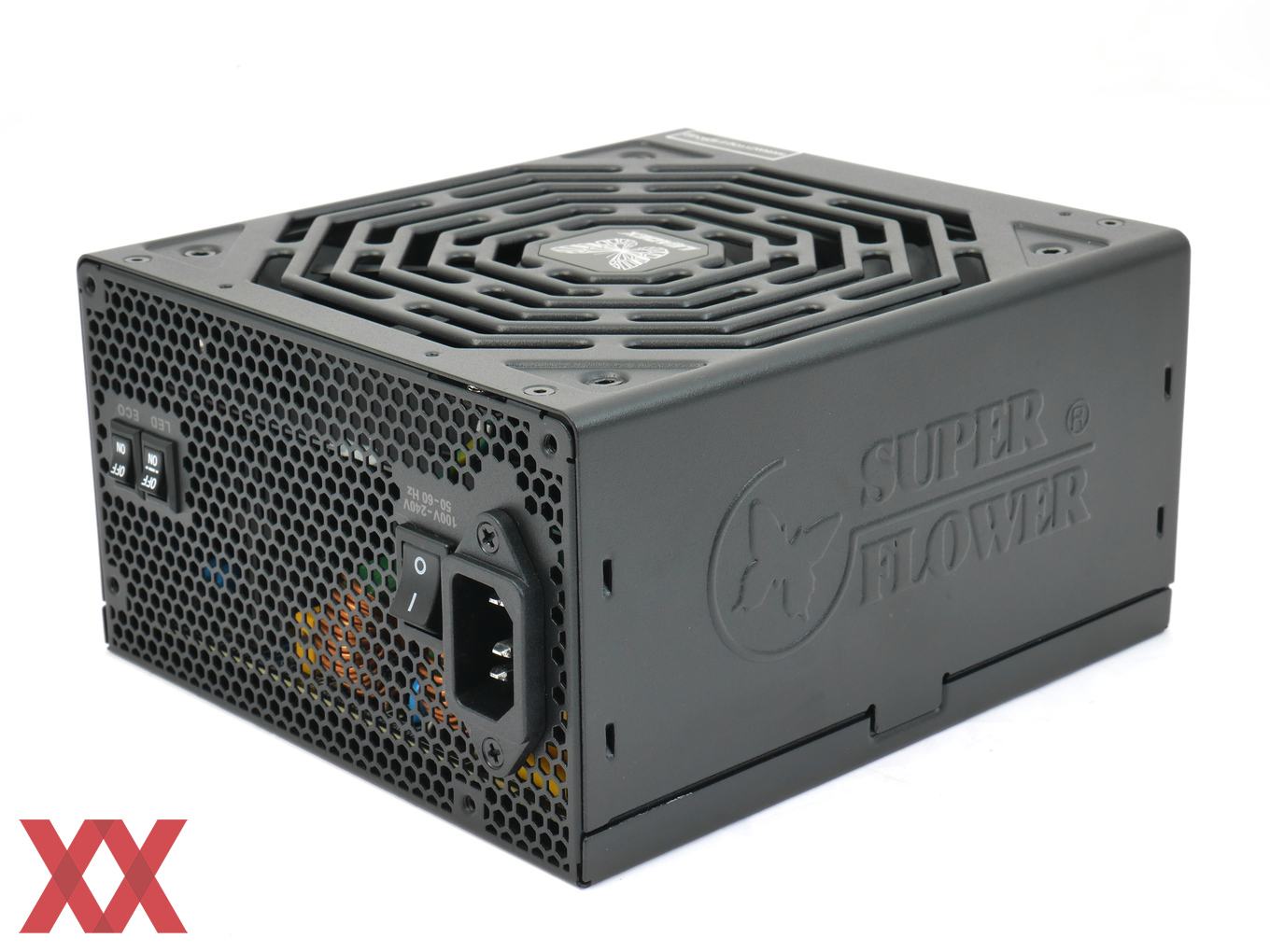Das Super Flower Leadex II Gold 750W bietet die von Super-Flower-Netzteilen gewohnte Optik. Charakteristisch ist nach wie vor das "Lüftergitter" in achteckiger Form, bei dem die Luftdurchlässe direkt in den Gehäusedeckel gestanzt wurden.