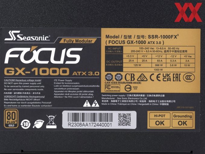 Beim Thema Leistungsfähigkeit braucht sich das Seasonic FOCUS GX-1000 ATX 3.0 nicht vor der Konkurrenz zu verstecken. Die Gesamtleistung von 1.000 W ist vollständig auf der 12-V-Schiene verfügbar, was einer nominalen maximalen Stromstärke von 83 A entspricht. Die Nebenspannungen 3,3 V und 5 V sind mit je 25 A dimensioniert und haben eine kombinierte Leistung von 125 W.