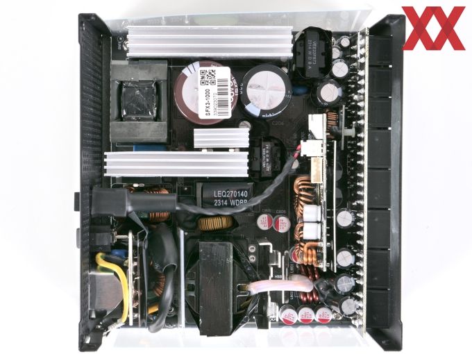 Im Inneren des FOCUS GX-1000 ATX 3.0 kommt eine hauseigene Plattform zum Einsatz, denn Seasonic entwickelt und produziert seine Netzteile selbst, bzw. ist auch als Auftragsfertiger auch für andere Marken tätig. Die Plattform mit LLC-Resonanzwandler-Topologie scheint ähnlich zu der in den vorherigen FOCUS-Serien verbauten zu sein, wurde aber dennoch grundlegend überarbeitet. Abgesehen vom 12VHPWR-Stecker bedeutet ATX 3.0 im Wesentlichen höhere Anforderungen an die kurzzeitige Spitzenlastfähigkeit, d.h. Hersteller mit bereit leistungsfähigen Designs brauchen in der Regel keine kompletten Neuentwicklungen.