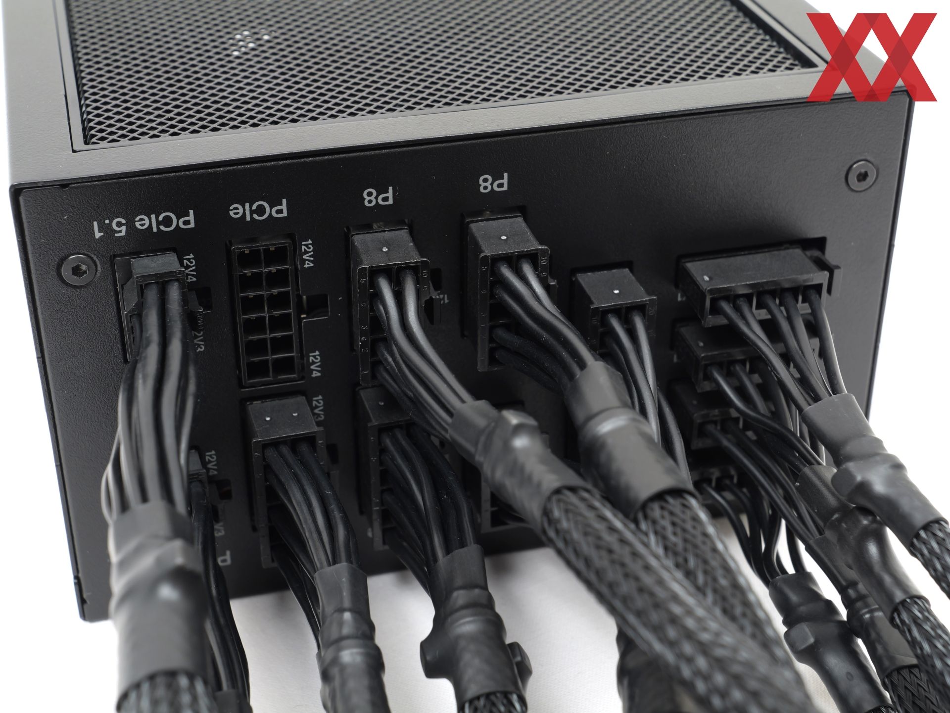 Die 14er-Serie ist kompatibel zu ATX 3.1 und bieten volle Unterstützung für PCEe-5.1-GPUs mit 12V-2x6-Versorgung, aber auch welche mit klassischem 8(6+2)-Pin-Anschluss. Nicht weiter erwähnt werden braucht sicher, dass ein voll-modulares Kabelmanagement vorhanden ist, 10 Jahre Herstellergarantie und dass die Dark Power 14 auf leisen Betrieb ausgelegt sind. Mit an Bord ist auch wieder eine Umschaltmöglichkeit zwischen Single- und Multi-Rail-Modus.