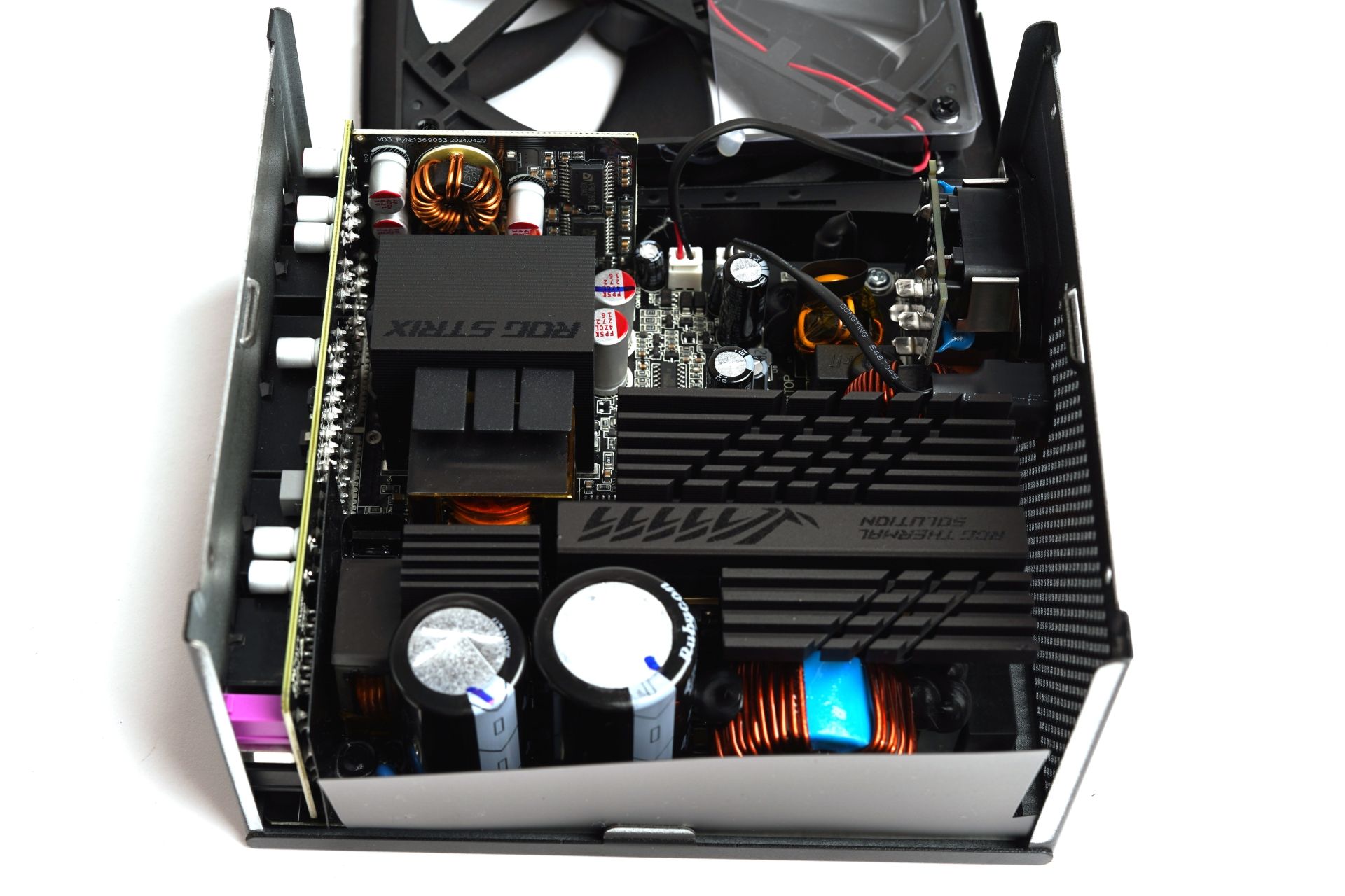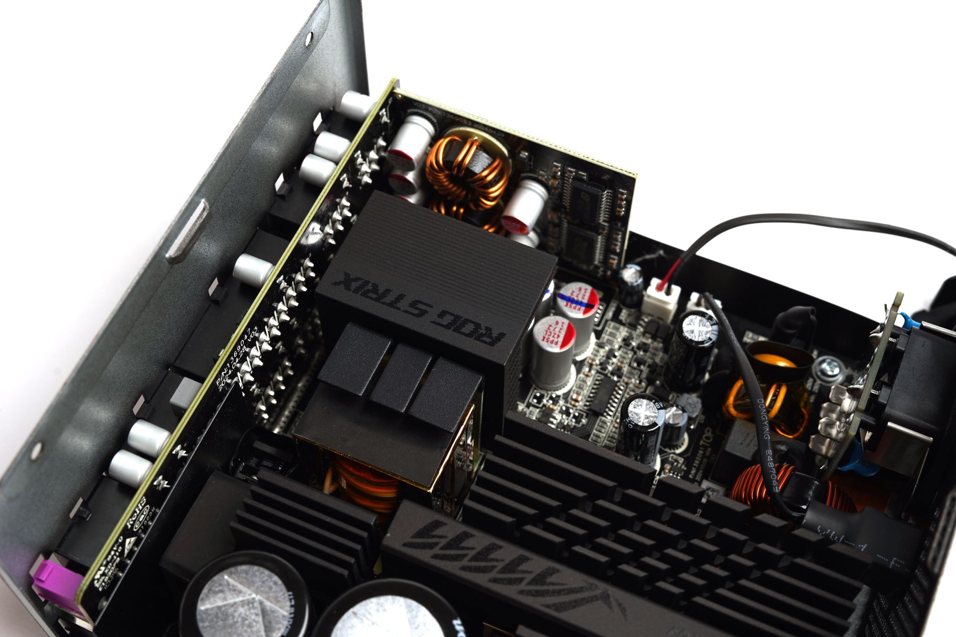 Für 1.200 W ist das ROG Strix 1200W Platinum durchaus kompakt: Das liegt an einer Half-Bridge + LLC-Resonanzwandler-Topologie, die bei 1.200-W-Modellen nicht zwingend selbstverständlich ist. Manche Hersteller greifen hier auf Full-Bridge-Designs zurück, aber ein Half-Bridge-Design spart Platz, Kosten und vereinfacht die Kühlung. Das Netzteil ist intern komplett kabelfrei gestaltet, und besitzt für Netzteile untypisch große Kühlkörper – für ROG-Geräte aber sicherlich im normalen Umfang, da ASUS hier ja gerne etwas mehr liefert, als vielleicht notwendig wäre.