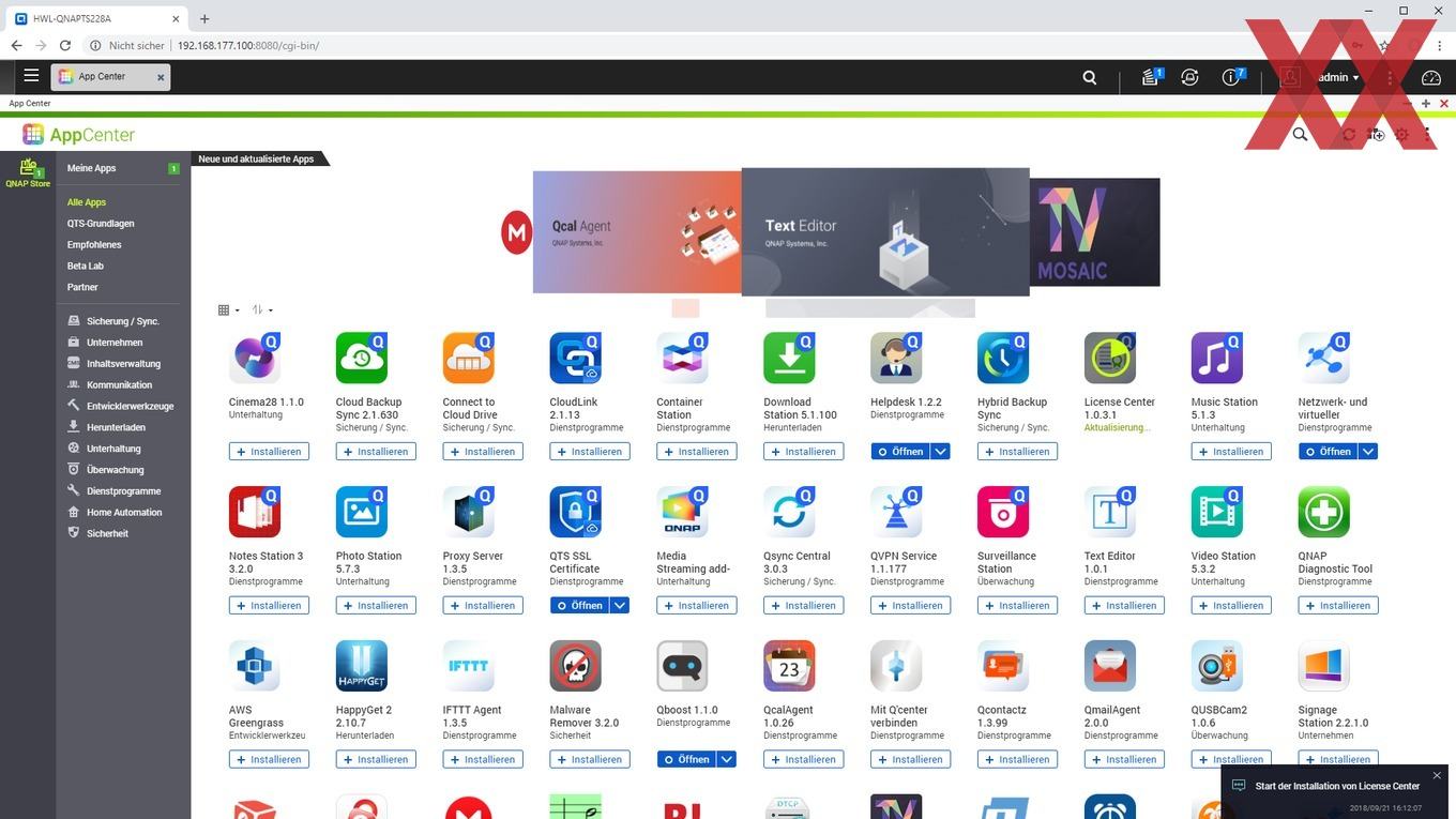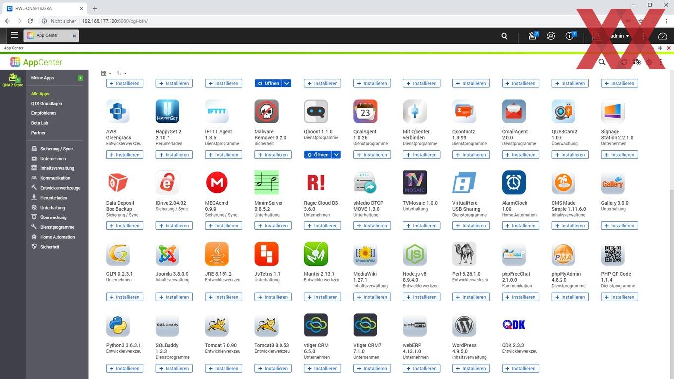 Eine Vielzahl von weiteren Programmen bzw. Paketen lässt sich über das App Center nachinstallieren. Das hat den Vorteil, dass das QTS des NAS im Auslieferungszustand recht schlank ist und der User nur die Softwarepakete nachrüsten braucht, die er auch benötigt.