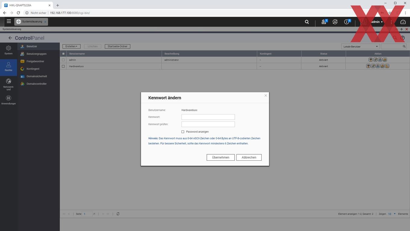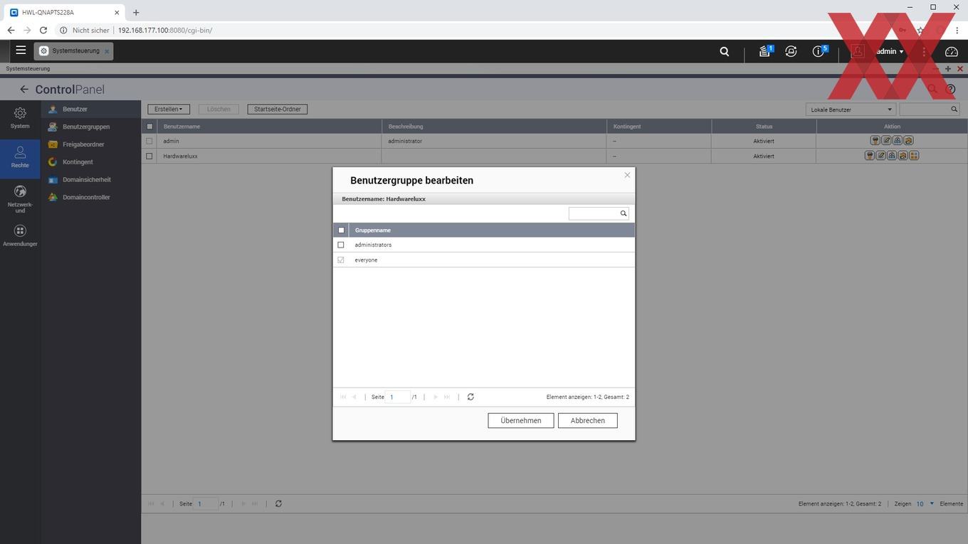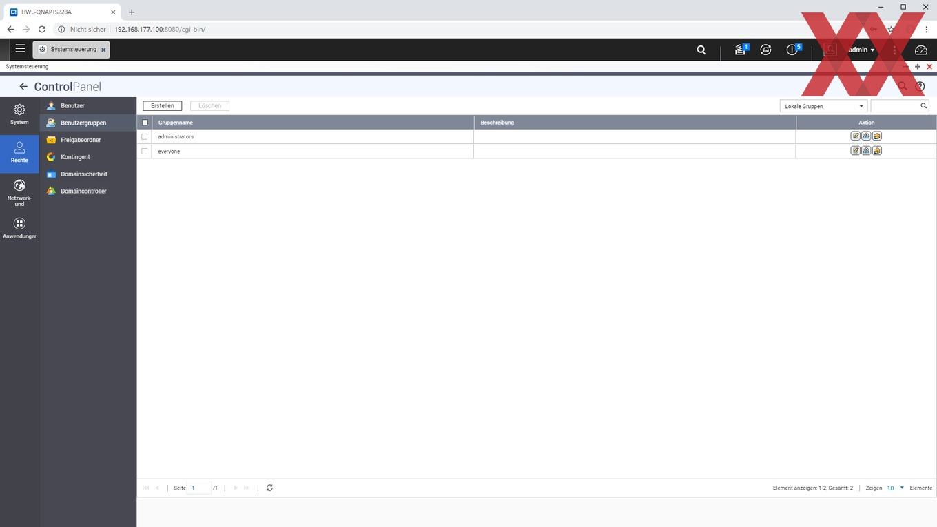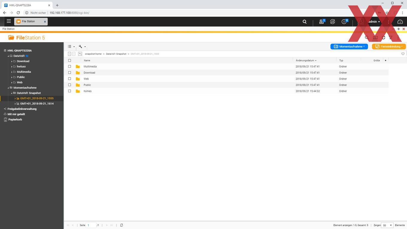 Auf den angelegten logischen Datenträgern (Volumes) lassen sich dann sehr flexibel Ordner anlegen, für die je nach Benutzer oder Benutzergruppe unterschiedliche Zugriffsberechtigungen vergeben werden können. Auch können wie üblich per USB angeschlossene externe Datenträger als Freigabeordner angelegt werden.