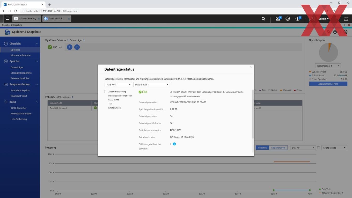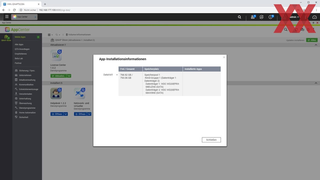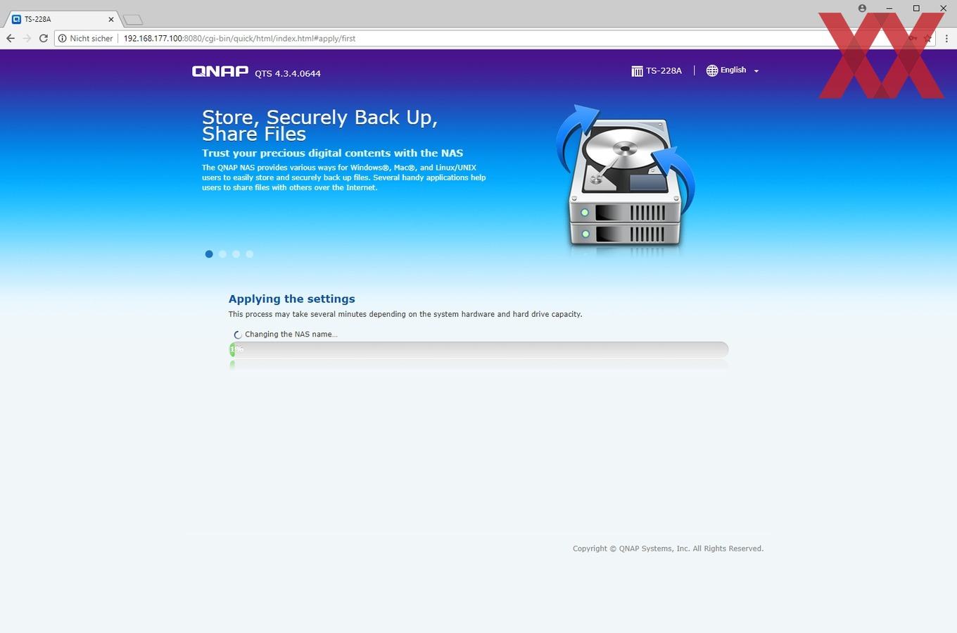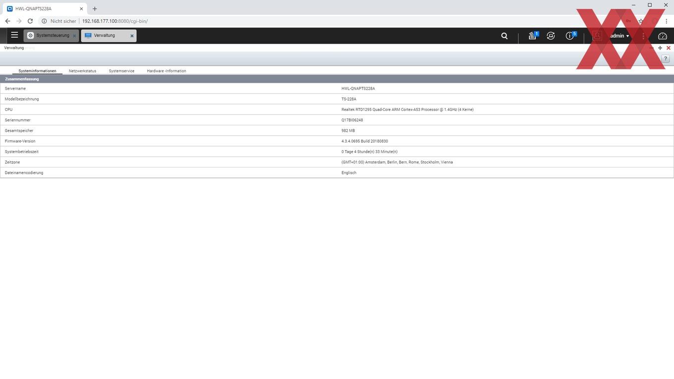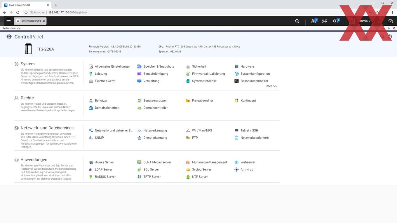 Auf dem TS-228A läuft QNAPs Betriebssystem QTS in der aktuellen Version. Aktuell ist QTS 4.3.4, aber der Erfahrung nach versorgt QNAP seine NAS sehr gut und auch lange mit Updates.