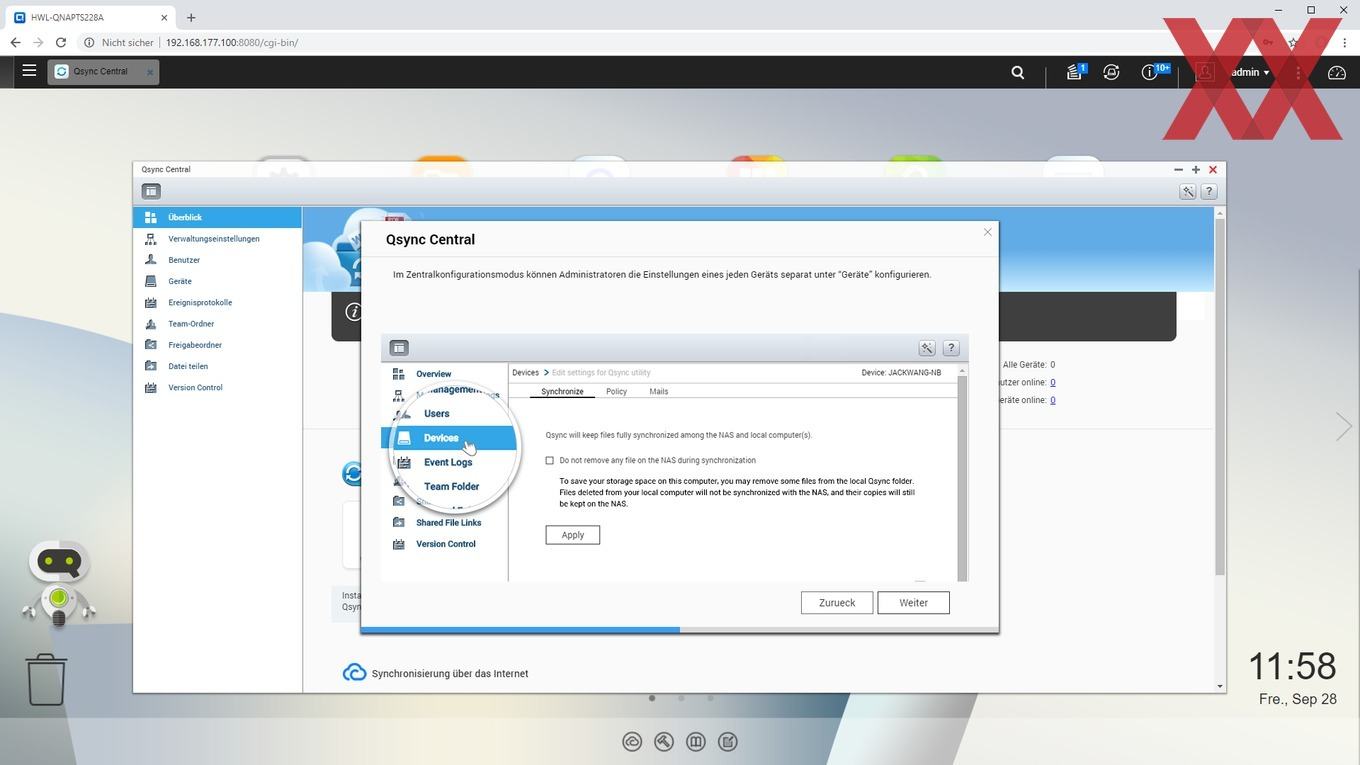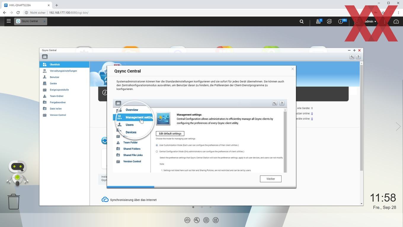 Interessant ist auch QNAPs Qsync Central Station 2.0, welches mit den entsprechenden Client-Programmen das NAS zur eigenen Cloud macht. Mit der "Qsync Central Station" läuft auf dem NAS ein Dienst, der die Verwaltung und den Abgleich der Clients übernimmt. Auf einem Client - Windows oder Mac - wird dann eine Software installiert und ein freizugebenes Verzeichnis konfiguriert, welches von diesem Zeitpunkt an kontinuierlich mit den Daten auf dem NAS synchronisiert wird. Natürlich lässt sich dann auch mit noch weiteren Clients auf diese Daten zugreifen. Wer also an mehreren Rechnern arbeitet, kann damit sicherstellen, dass er an jeder Workstation - ohne manuellen Datentransfer oder vorherige Server-Up-/Downloads - stets lokal die aktuellsten Daten verfügbar hat. Eine Versionskontrolle mit Speicherung verschiedener Versionsverläufe bietet die Qsync File Station ebenfalls. Ebenfalls interessant ist die Funktion, für mehrere unterschiedliche Benutzer gemeinsame Ordner anzulegen, auf welche dann verschiedene Benutzer parallel zugreifen können.