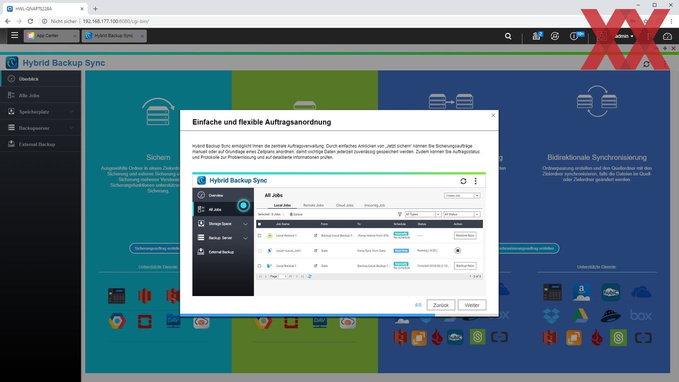 Mit Hybrid Backup Sync ist das Sichern von Daten bei diversen kommerziellen Cloud-Anbietern möglich. Aber auch Sicherungen auf weitere NAS oder lokale Datenträger können hier sehr flexibel eingerichtet werden.