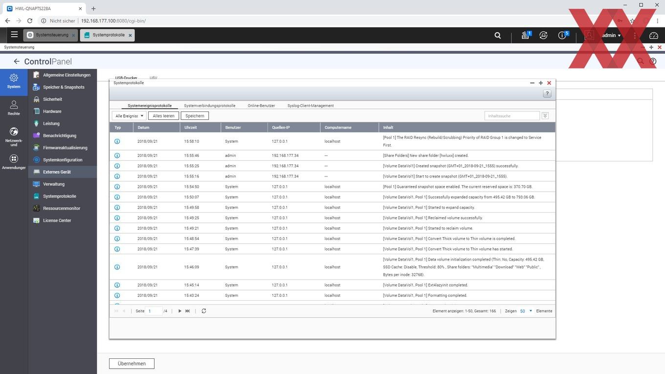 Insgesamt bietet das aktuelle QTS sehr viele Möglichkeiten und hat unserer Meinung nach in Sachen Features und Optik auch auf Synologys DSM aufholen können. In Sachen Übersichtlichkeit aber hat QTS hier und da sicher noch Optimierungspotential verglichen mit Synology DSM. Insbesondere im Bereich der Speicherverwaltung braucht man etwas Zeit, um auf Anhieb in den sehr vollen Screens die gewünschte Funktion zu finden. Und auch insgesamt ist bei QTS die Oberfläche etwas weniger strukturiert und etwas weniger übersichtlich als bei DSM.