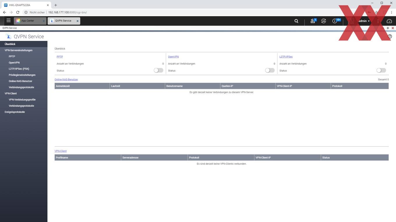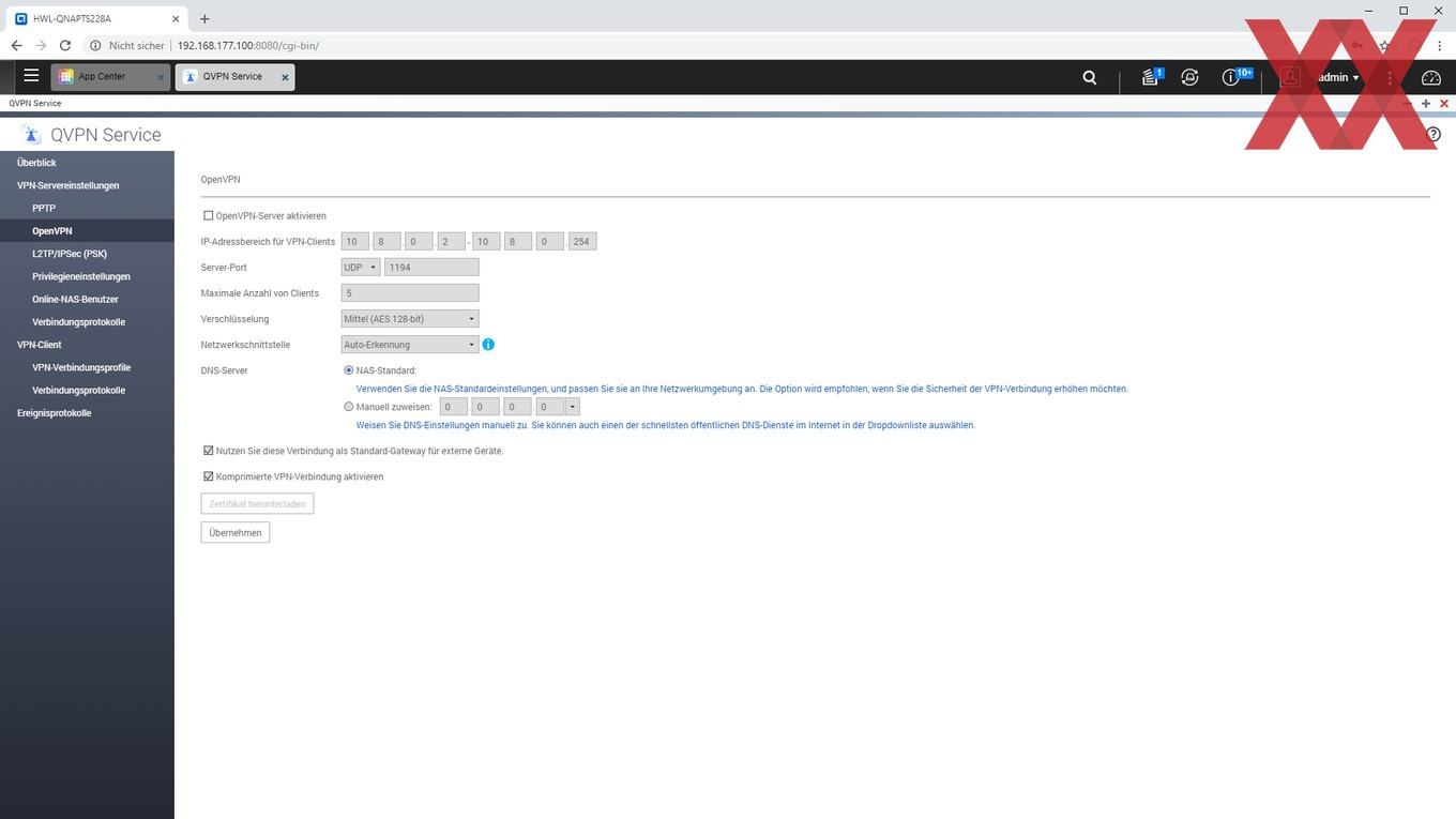 Eine VPN-Funktionalität ist z.B. beim TS-228A nicht vorinstalliert, kann aber im App Center als "QVPN Service" nachinstalliert werden, welche Server- als auch Client-Funktionalität bietet. Es werden PPTP, OpenVPN und L2TP/IPSec unterstützt, wobei z.B. die Einrichtung eines OpenVPN-Servers durchaus vergleichsweise einfach ist. Per Klick kann eine Zip-Datei fertig mit Config und Zertifikat heruntergeladen werden, welche dann - ggf. nach Anpassung der IP in der Config - nur noch auf den Client kopiert werden muss.