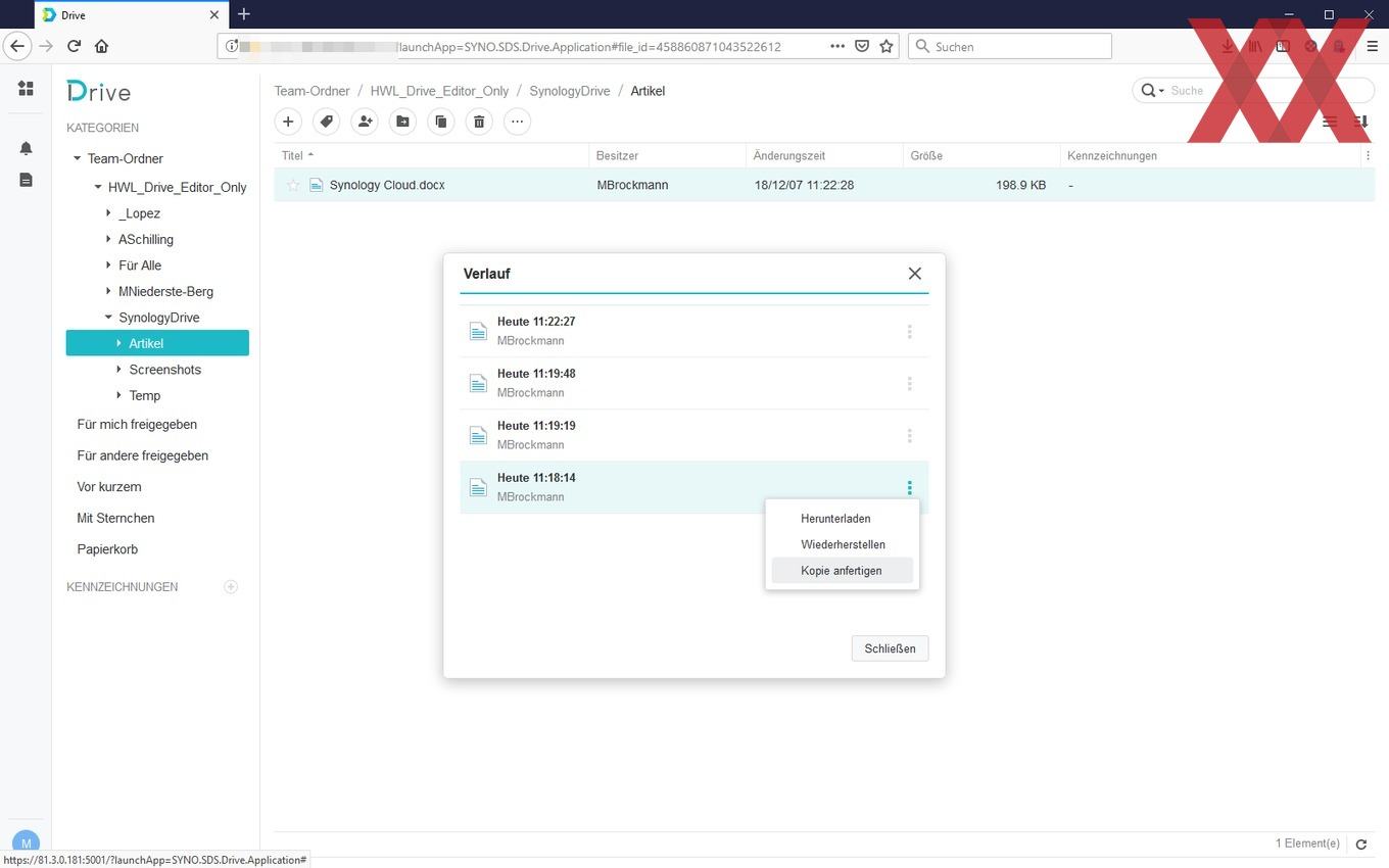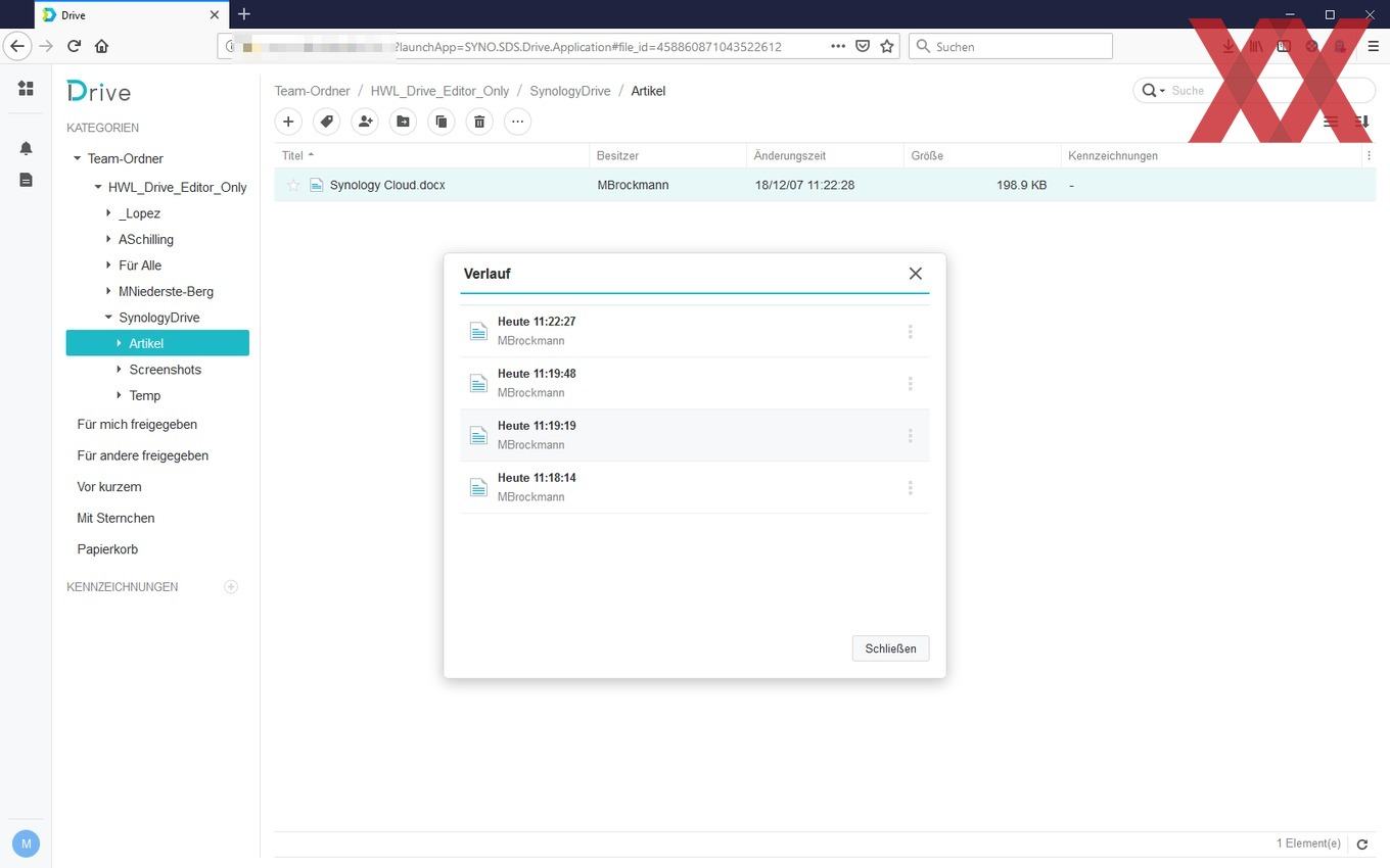 Ein sehr praktisches Feature von Synology Drive ist die Versionierung der auf dem NAS gespeicherten Daten. Von einer Datei lassen sich – intelligent verwaltet – bis zu 32 verschiedene Versionen vorhalten. Wenn man also unbeabsichtigt eine Datei löscht, überschreibt oder auch versehentlich in einer Datei etwas löscht, dann kann man in der Regel problemlos und schnell wieder auf die richtige Version der Datei zurückgreifen. Bereits vor dem Umstieg von Hardwareluxx auf die FlashStation-Umgebung hat sich bei einigen Kollegen Drive bzw. Cloud Station im Zusammenspiel mit einer selbst betriebenen DiskStation bewährt. Jetzt mit dem Umstieg auf die Flashstation ergibt sich eine höhere Performance und auch die Möglichkeit, über mehrere synchronisierte Ordner auch die Zusammenarbeit mit Kollegen zu optimieren.