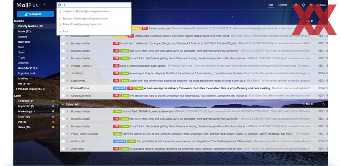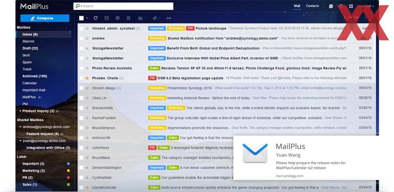 MailPlus als Mailserver bietet umfangreiche Konfigurationsoptionen, angefangen von der Unterstützung mehrerer Domains, Importmöglichkeiten von Exchange-Systemen über Gruppen-/Benutzerrichtlinien bis hin zur Möglichkeit, bestimmte Teilbereiche von Sub-Adminstratoren verwalten zu lassen. Ebenfalls interessant ist, dass die Hochverfügbarkeits-Mechanismen unterstützt werden, was einen nahtlosen Mailserver-Betrieb ermöglicht. Im Bereich Sicherheit steht eine Bedrohungsüberwachung, Anti-Spam-Module, die Integration von entsprechenden Anti-Malware-Modulen und DDoS-Schutz der SMTP-Verbindungen auf der Feature-Liste.