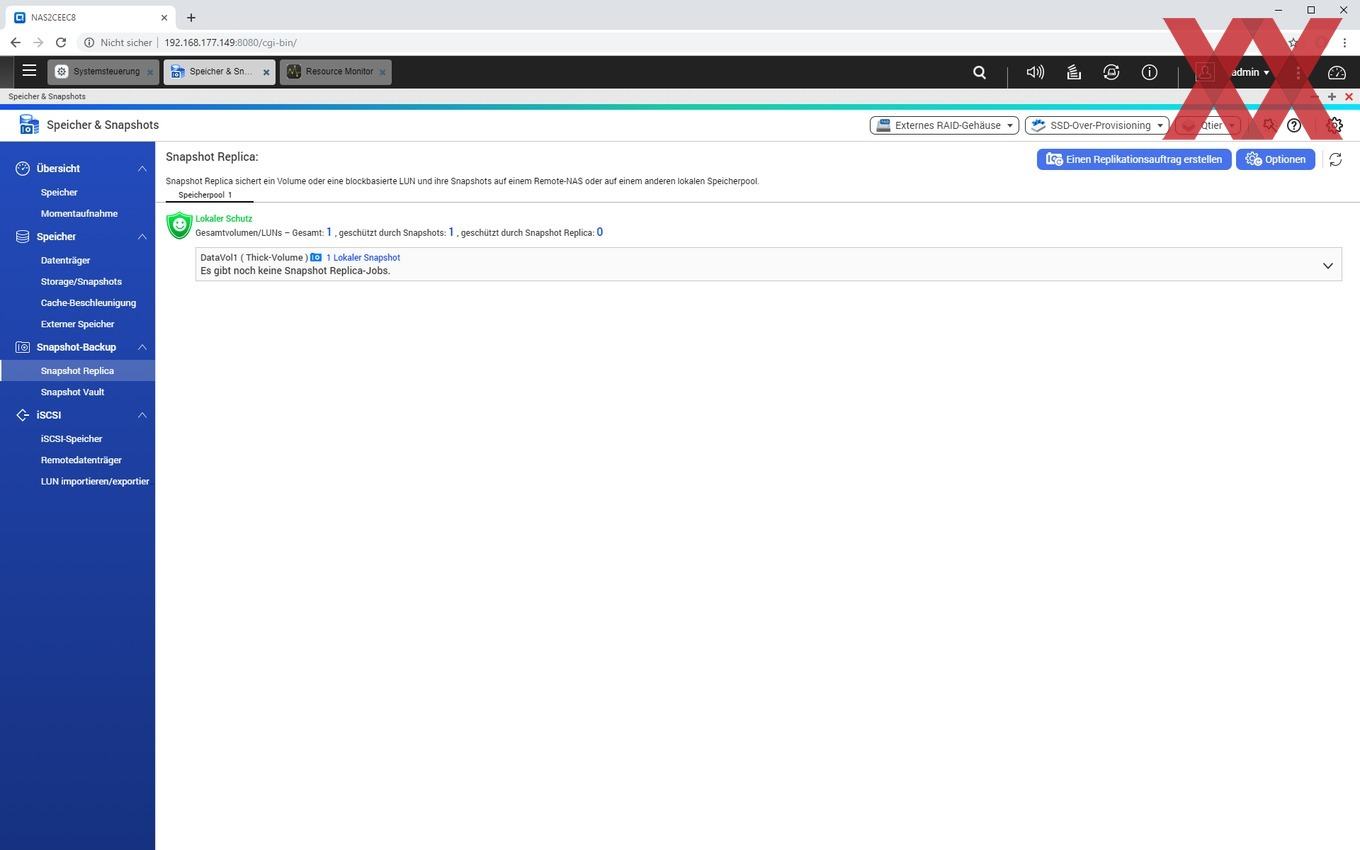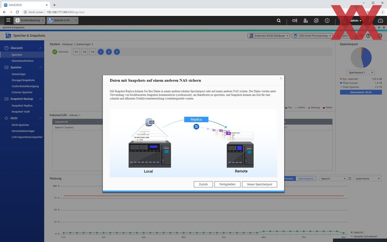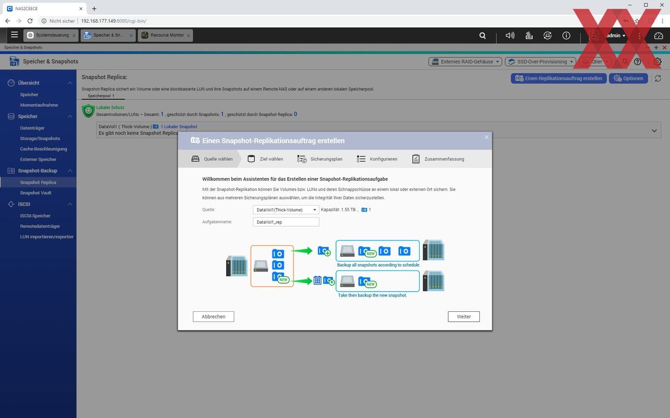 Snapshots lassen sich per Snapshot Replica dann auch auf lokale Datenträger oder ein externes QNAP NAS auslagern. Über "Snapshot Vault" lassen sich von anderen NAS gesicherte Snapshots anzeigen.
