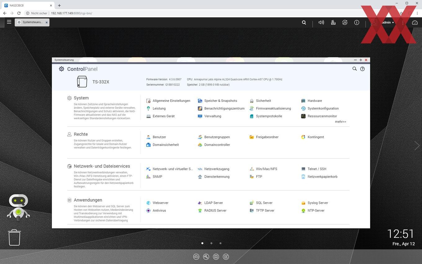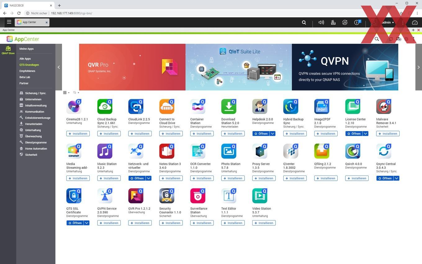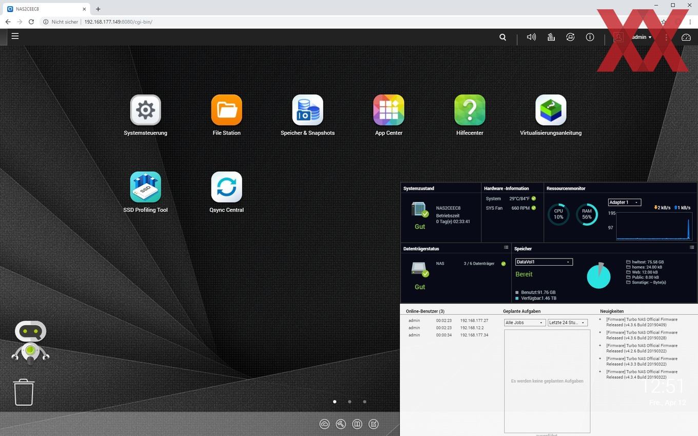 Bei QNAP trägt das Betriebssystem den Namen QTS, welches wie bei den Lösungen von QNAP und Synology auch auf einem Linux-Unterbau setzt, welcher zur einfacheren Bedienung mit einem auf Fenstern basierenden Benutzerinterface versehen wurde. Die aktuelle Releaseversion von QTS trägt bei QNAP zum Testzeitpunkt die Versionsnummer 4.3.6.