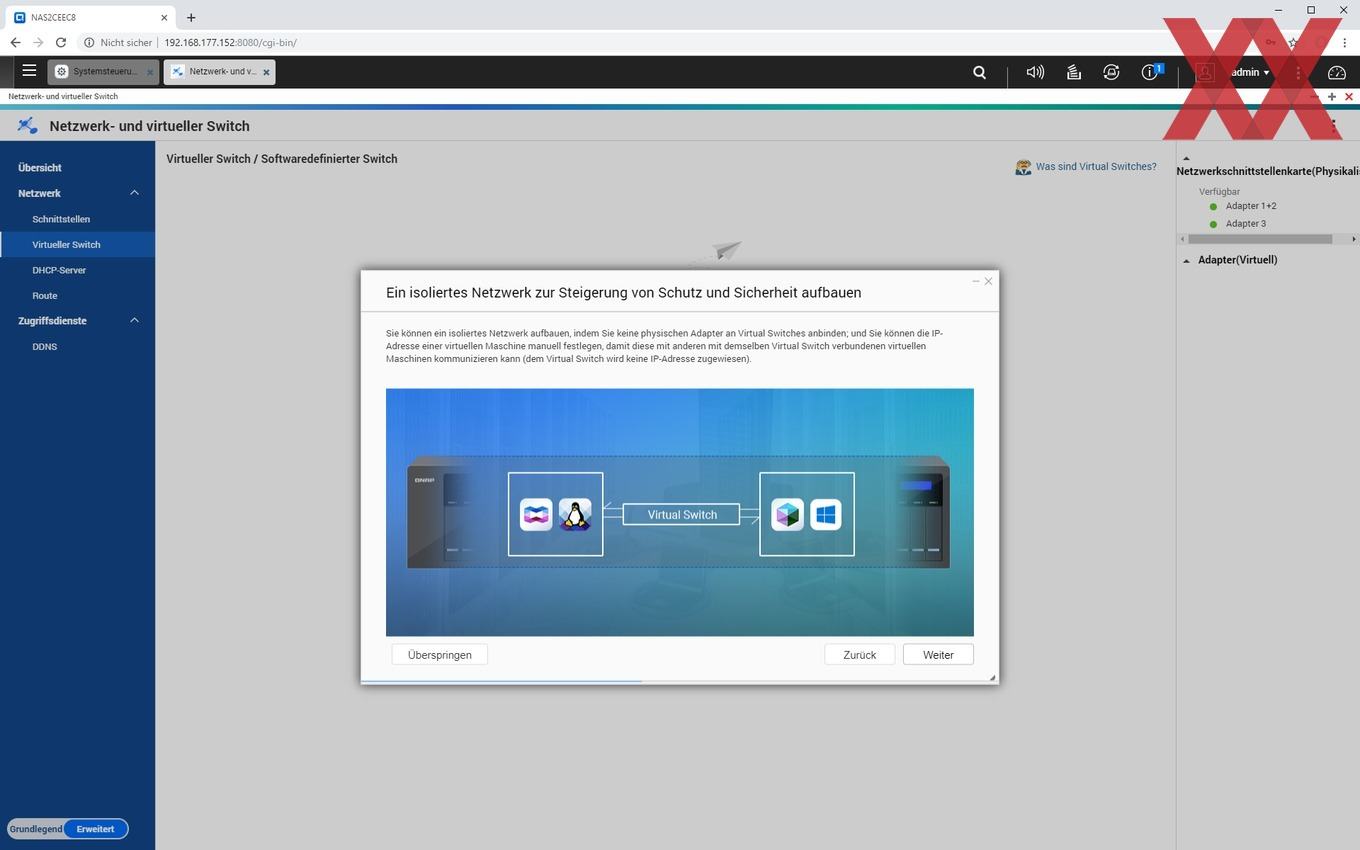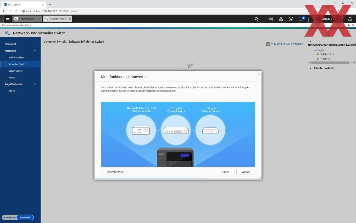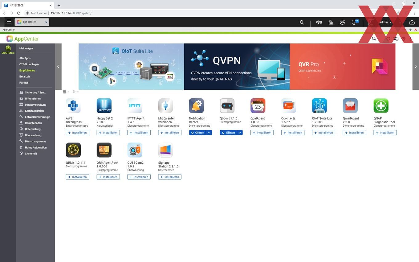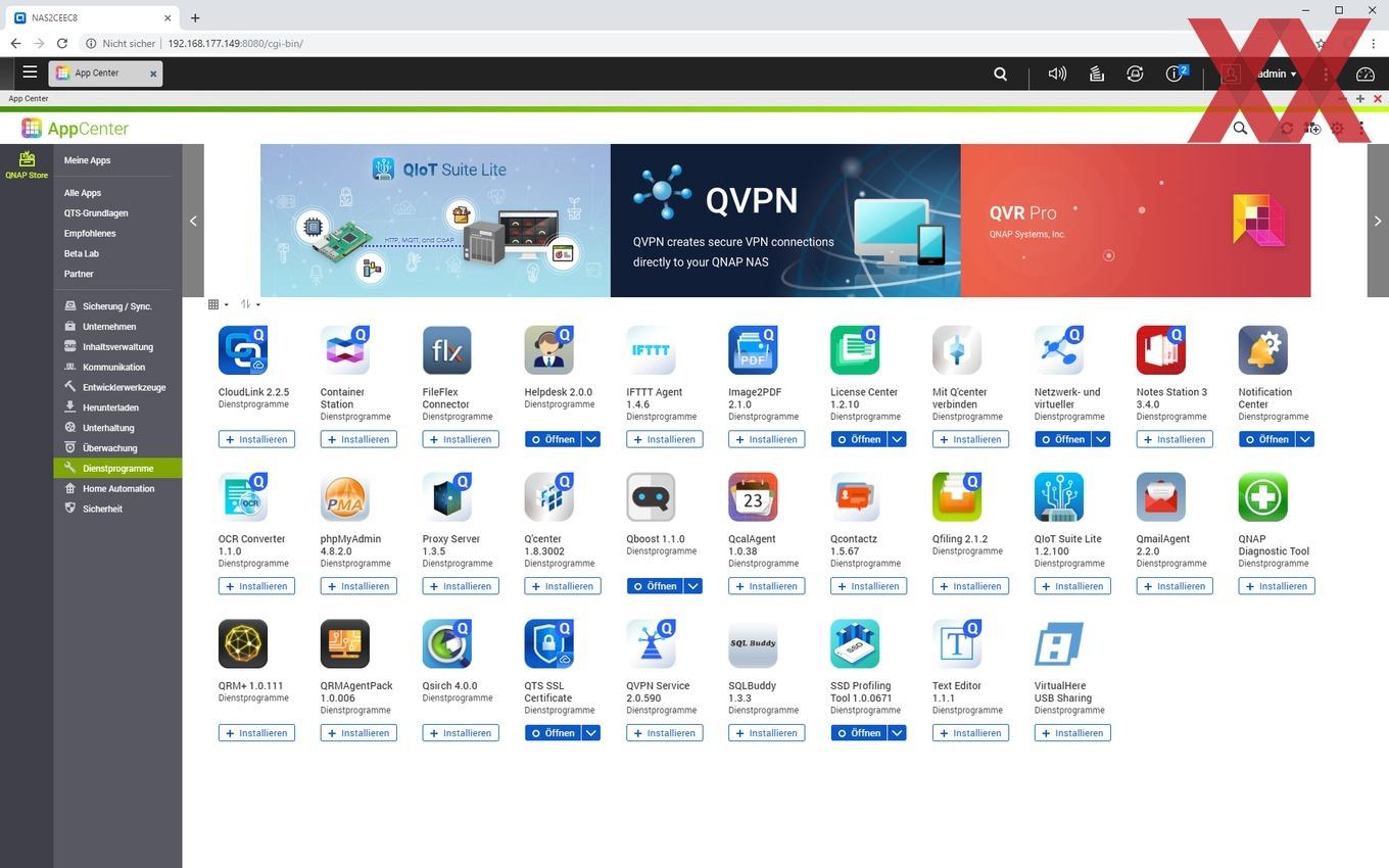 Bei QNAP trägt das Betriebssystem den Namen QTS, welches wie bei den Lösungen von QNAP und Synology auch auf einem Linux-Unterbau setzt, welcher zur einfacheren Bedienung mit einem auf Fenstern basierenden Benutzerinterface versehen wurde. Die aktuelle Releaseversion von QTS trägt bei QNAP zum Testzeitpunkt die Versionsnummer 4.3.6.