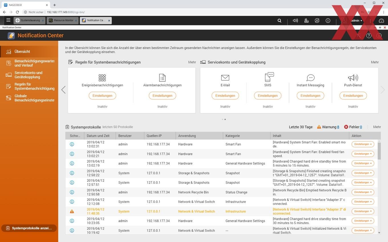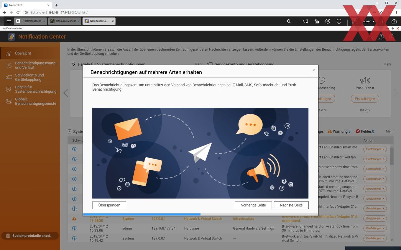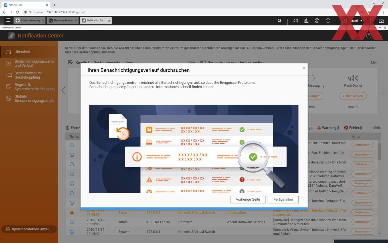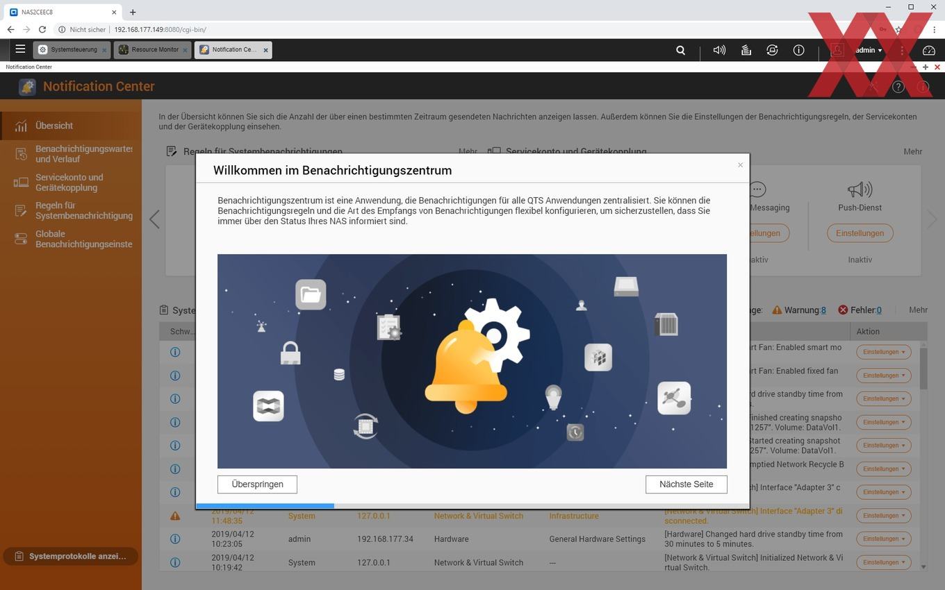 Ebenfalls noch relativ neu bei QTS ist das Benachrichtigungszentrum, welches neben Systemmeldungen auch die Meldungen der QTS-Apps sammelt.