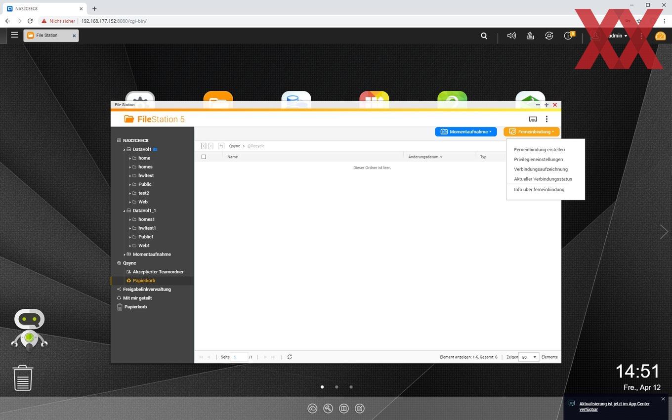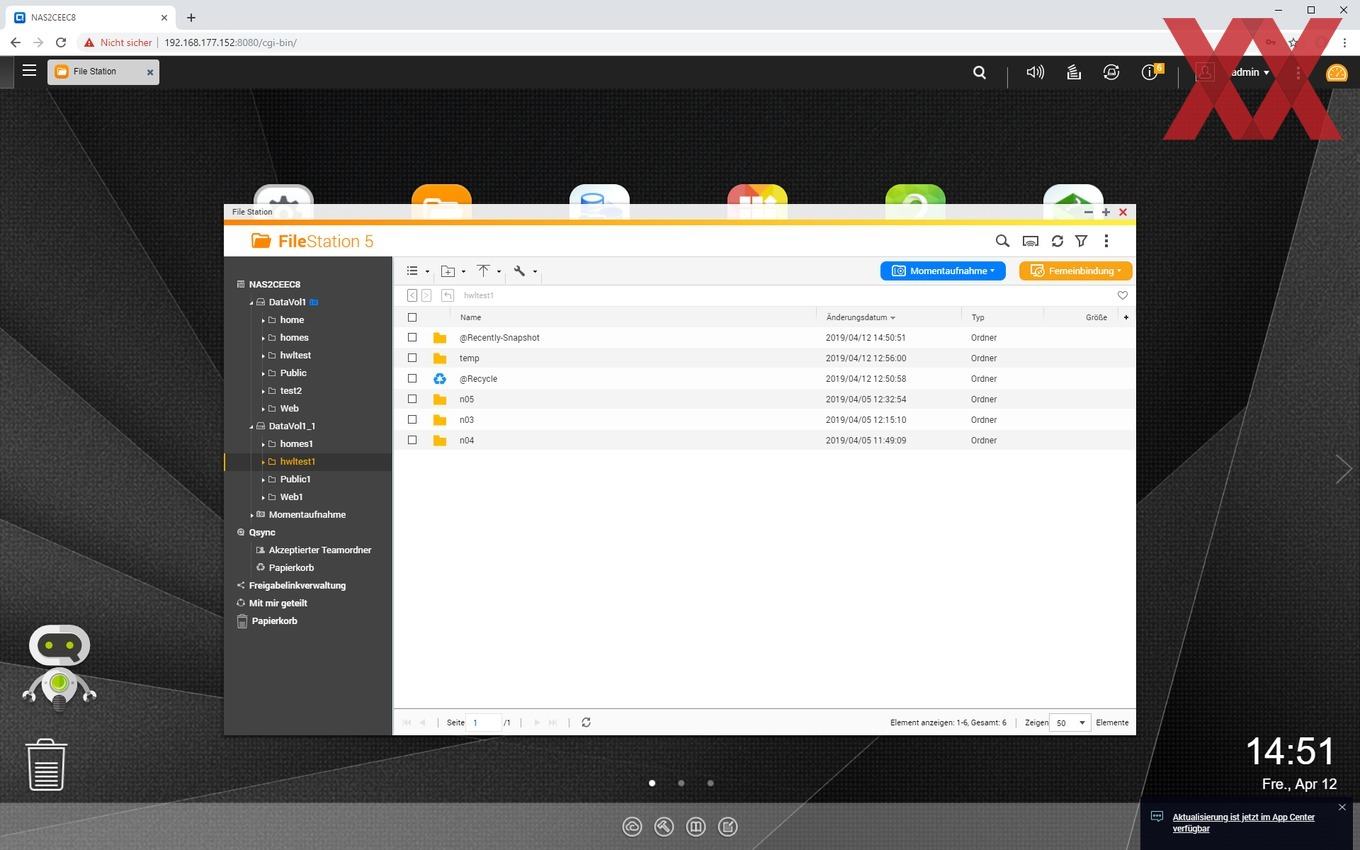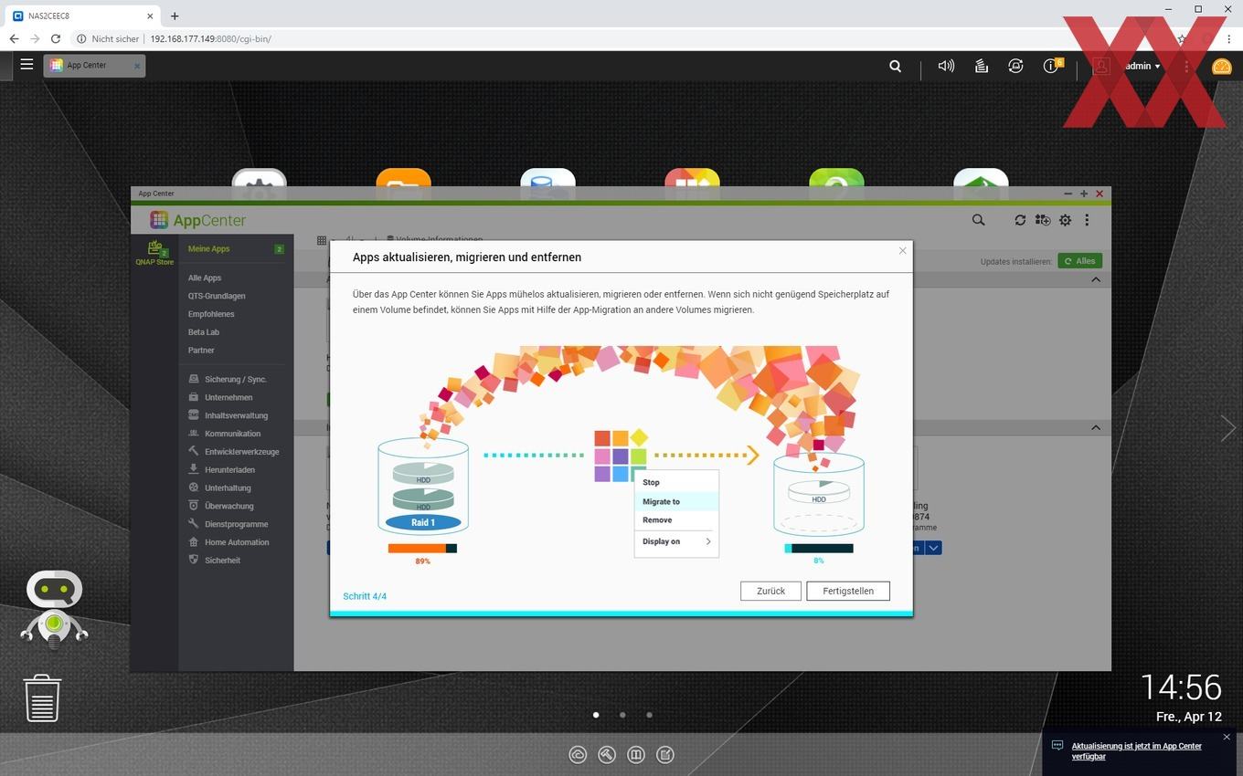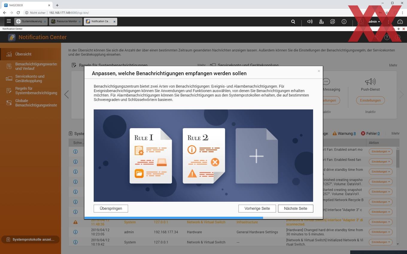 Ebenfalls noch relativ neu bei QTS ist das Benachrichtigungszentrum, welches neben Systemmeldungen auch die Meldungen der QTS-Apps sammelt.