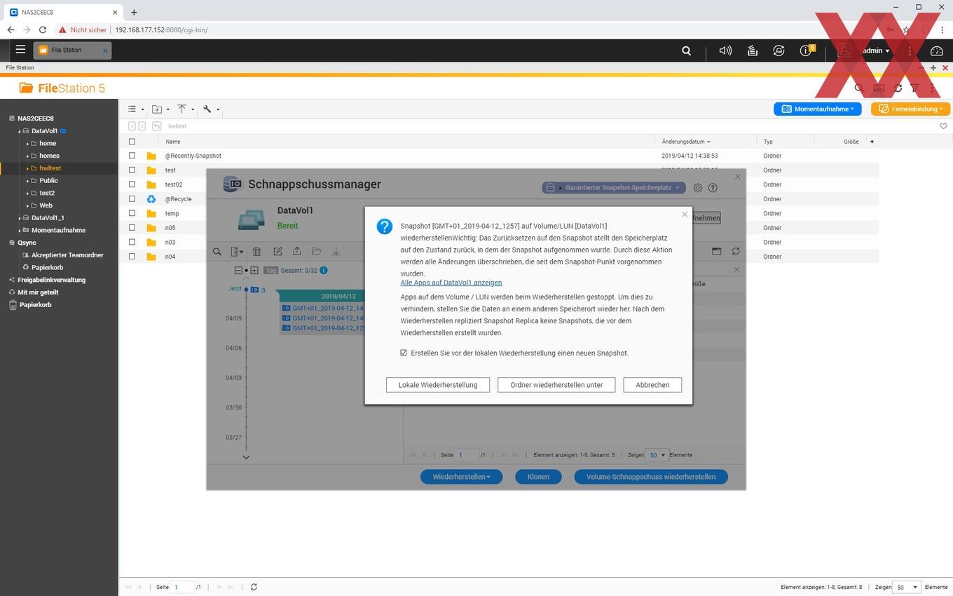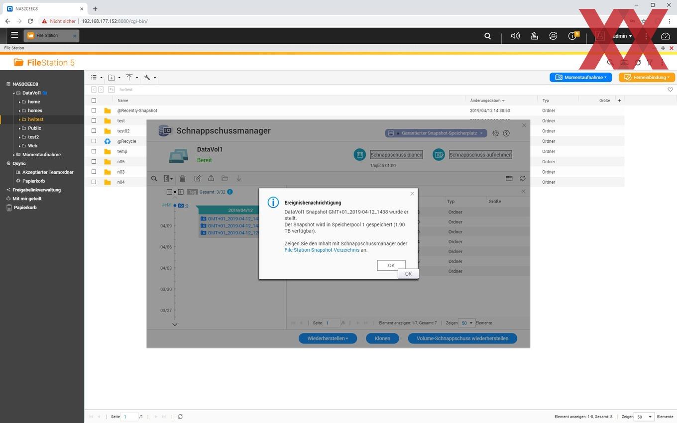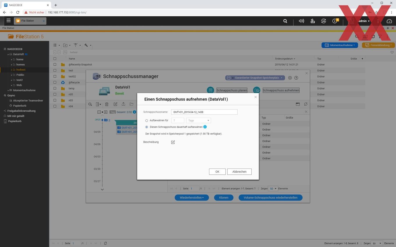 Von der Funktionalität her scheint QNAPs Snapshots den integrierten Verfahren von ZFS oder btrfs nicht nachzustehen. Laut QNAP soll QTS Snapshot aufgrund des schnelleren Ext4-Dateisystems auch performanter arbeiten, aber das ist die Aussage des Herstellers.