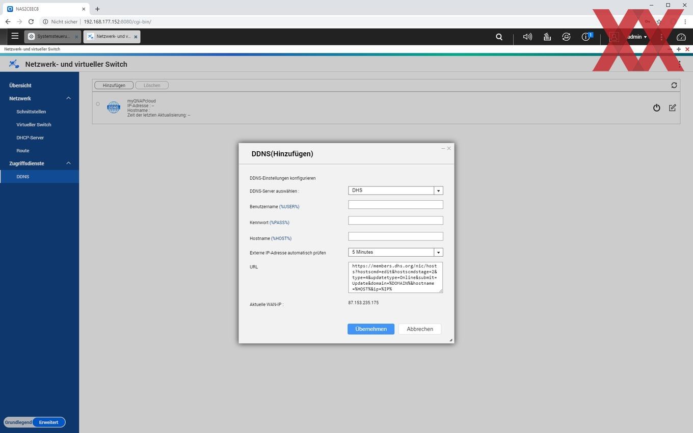 Zuletzt besteht noch eine Einrichtmöglichkeit über die QNAP-Cloud mit dem auf der Gehäuseseite vermerkten "Cloud-Key", sofern das NAS per DHCP im Heimnetz eine IP bekommen hat und eine Internetverbindung zu QNAPs Servern aufbauen kann.
