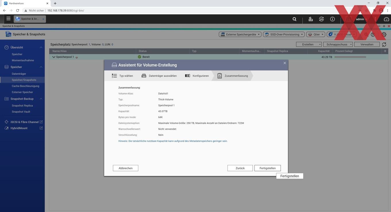 Wenn das Erstellen des Speicherpools erledigt ist, muss der Nutzer noch ein Volumen anlegen. Dies geschieht genauso, wie bei der Erstellung eines "normalen" Volumens.