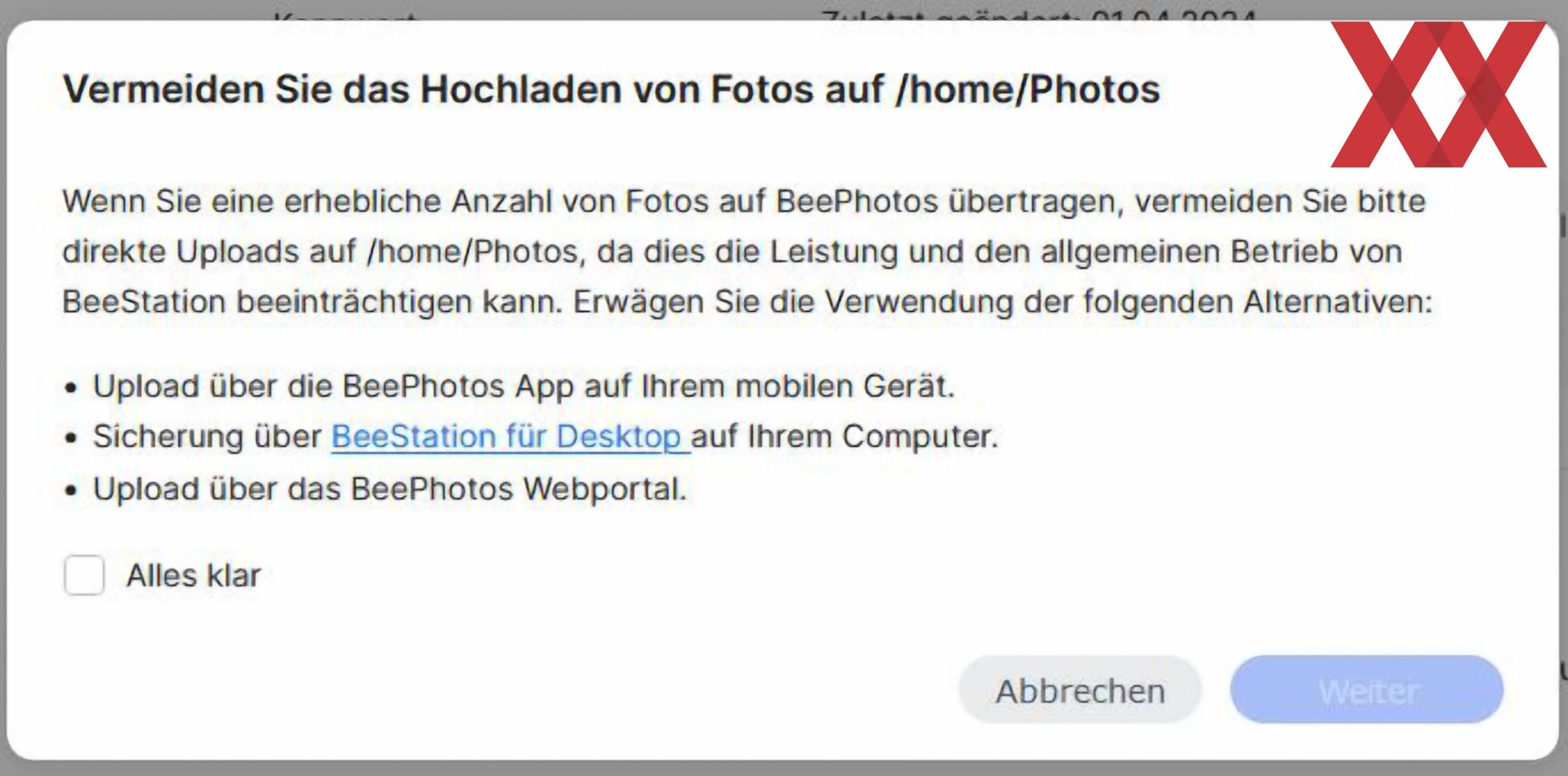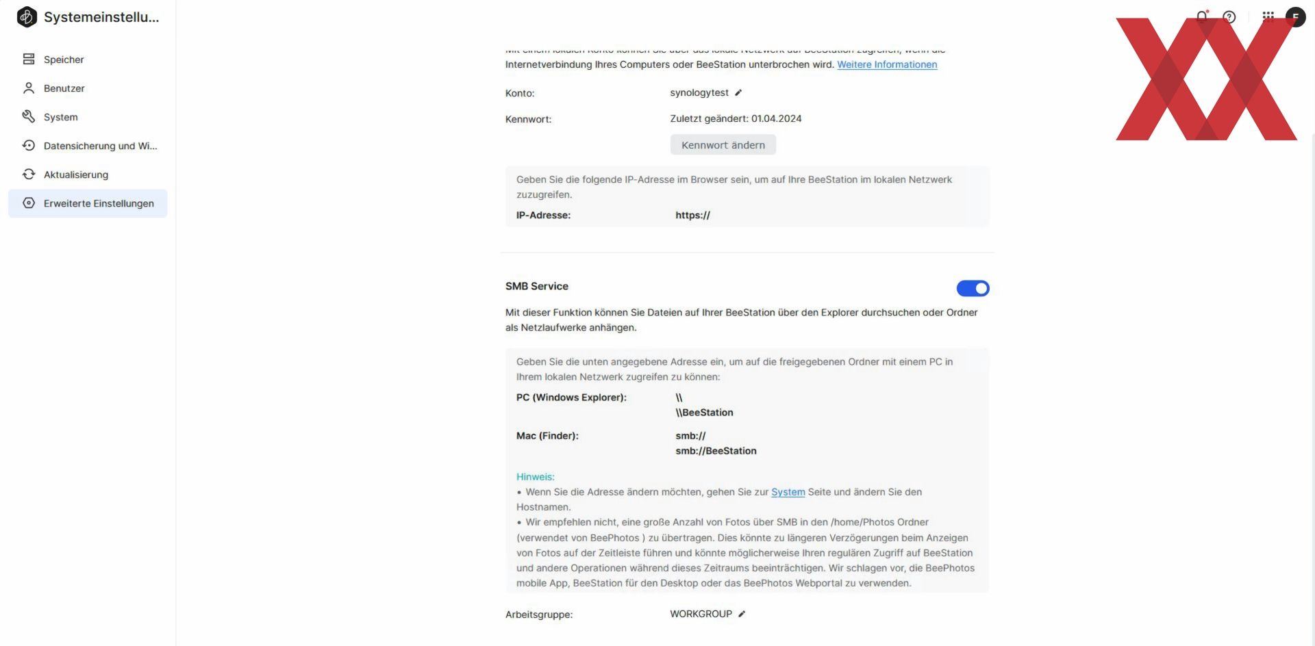 Hierfür spricht auch, dass nach der Aktivierung des SMB-Zugriffs sogleich eine Alarmmeldung erscheint, welche vor der ausgiebigen Nutzung der SMB-Verbindung warnen soll. Vermutlich ist die verbaute Hardware nicht auf eine dauerhafte Last von 1 GBit/s ausgelegt.