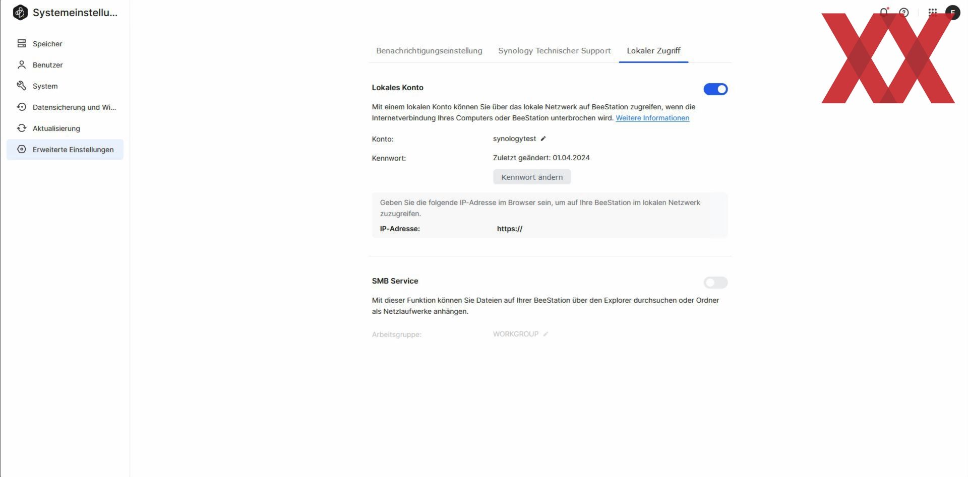 Unter "lokaler Zugriff" finden sich die Informationen zum lokalen Benutzer. Hier lässt sich nur ein Benutzer anlegen, was dafür spricht, dass Synology diese Funktion eher als Notfall ansieht und weniger als eine Alternative.
